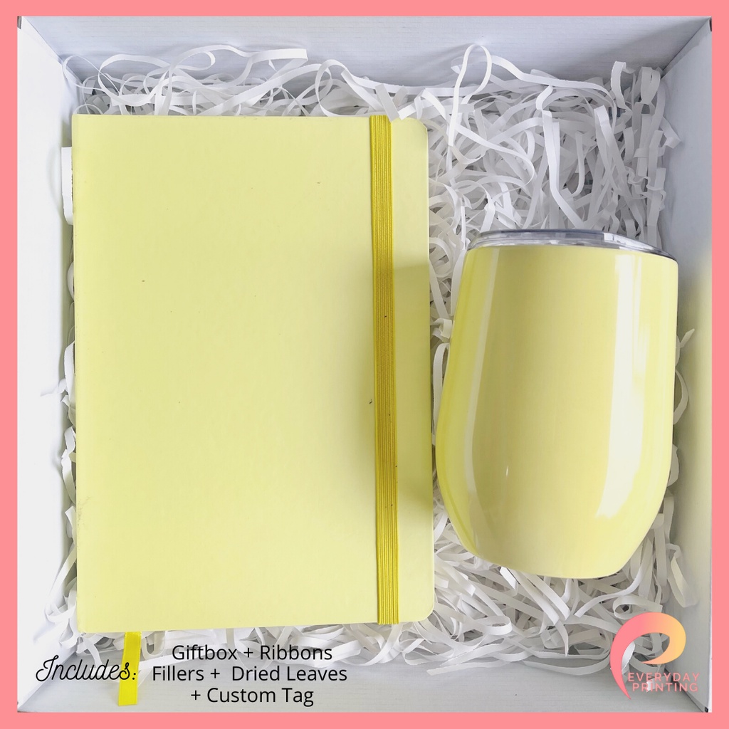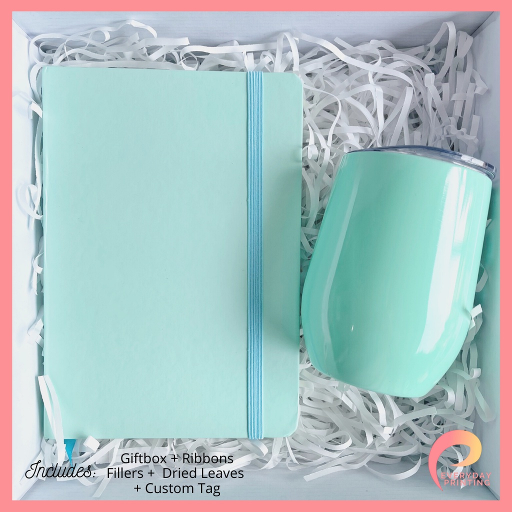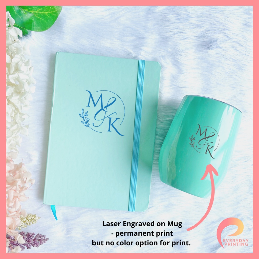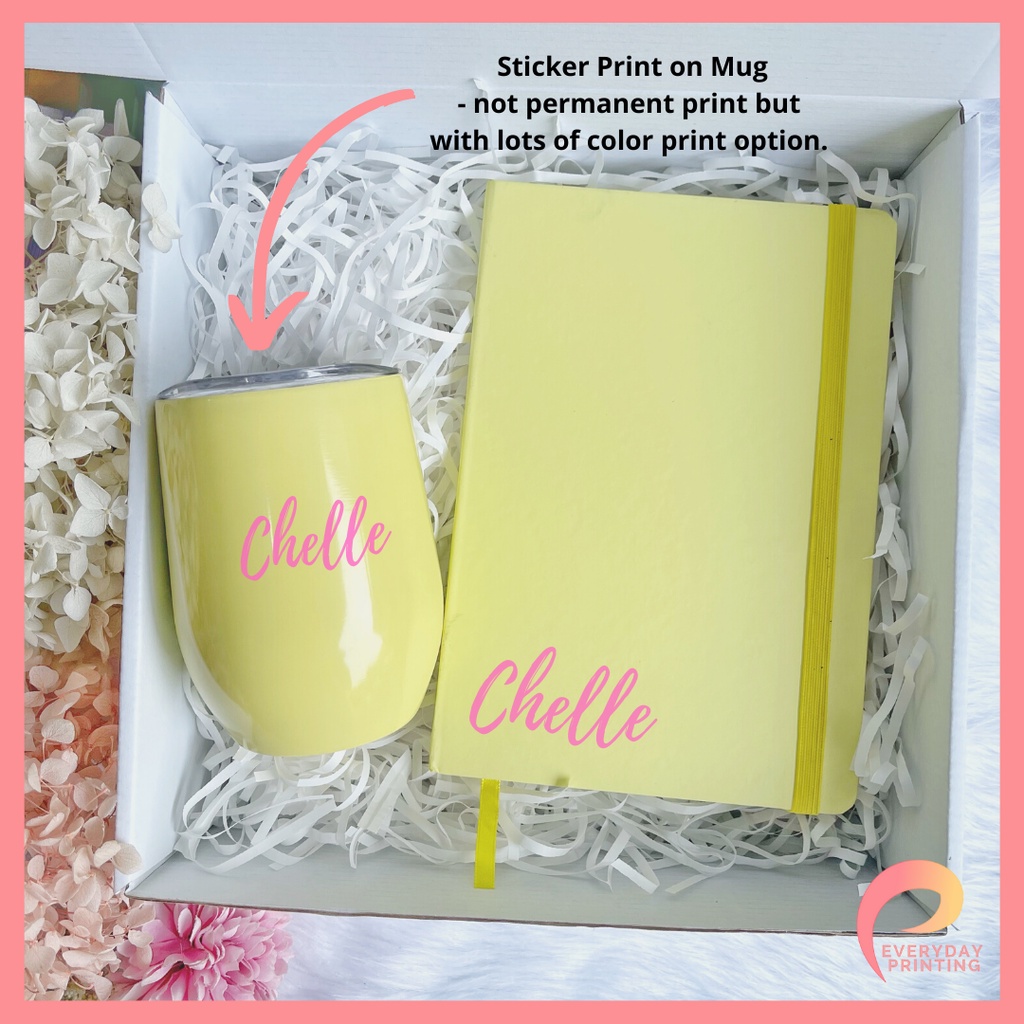 Personalized Egg Mug Tumbler and Pastel Hardbound Notebook / Journal Gift Bundle Set