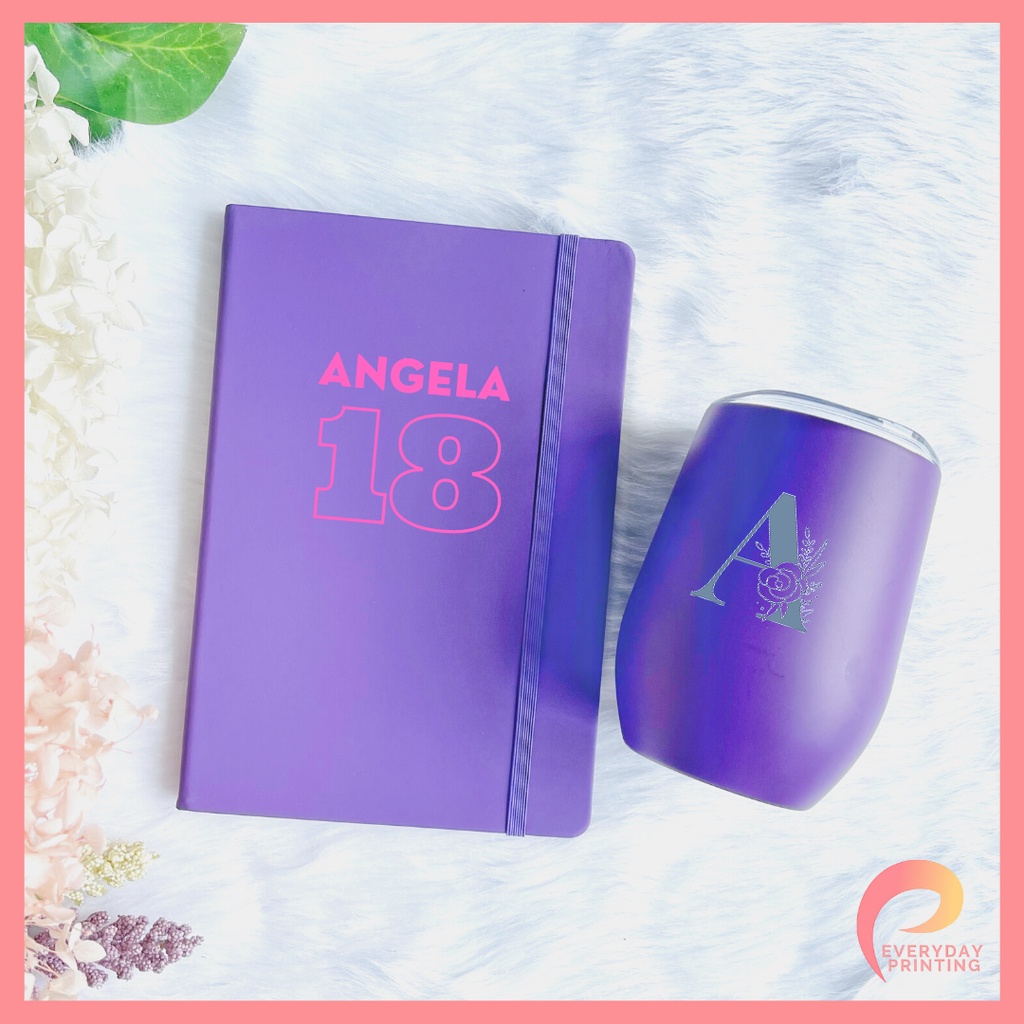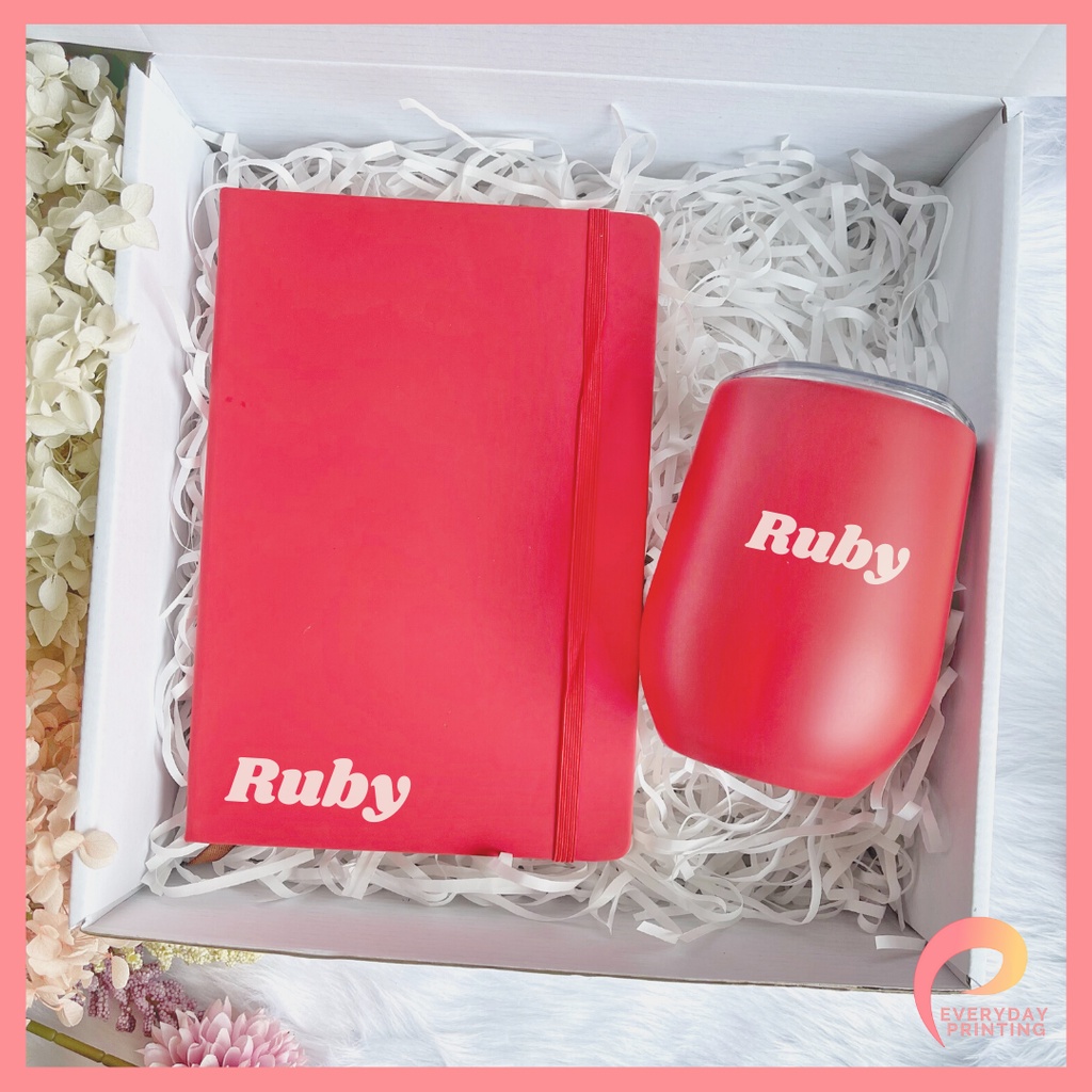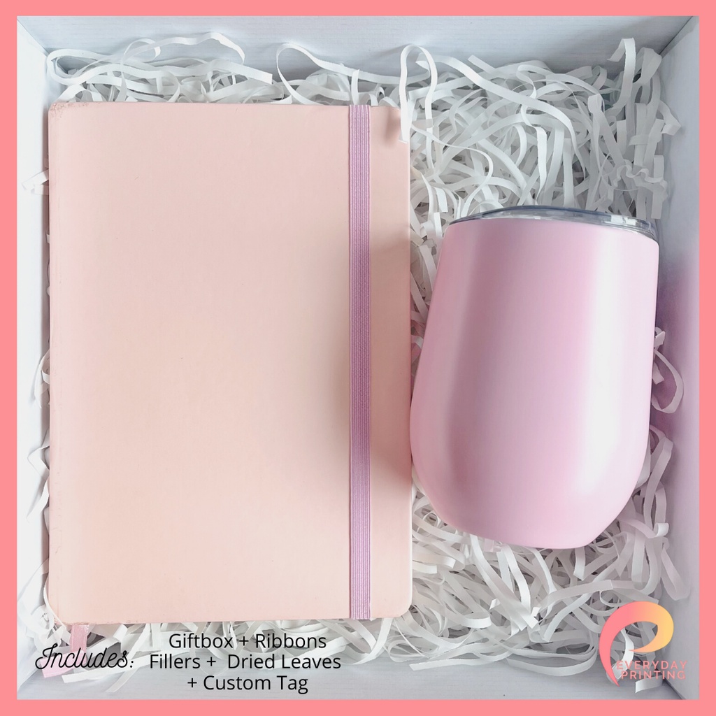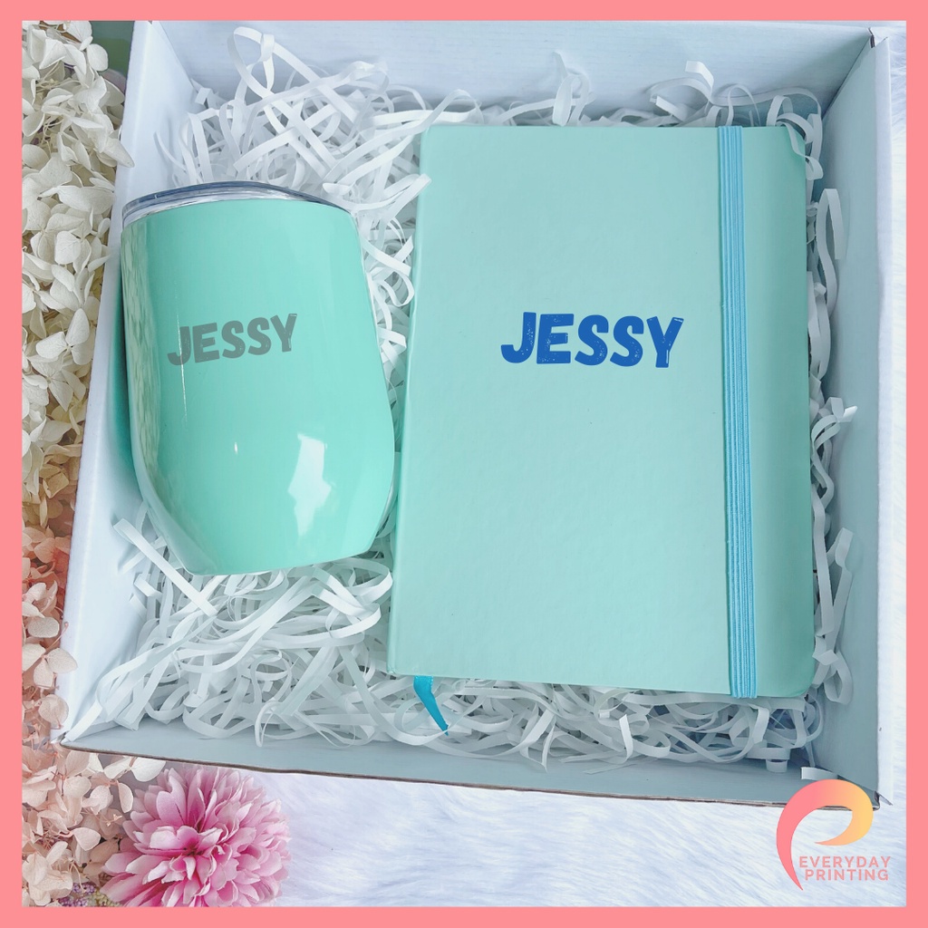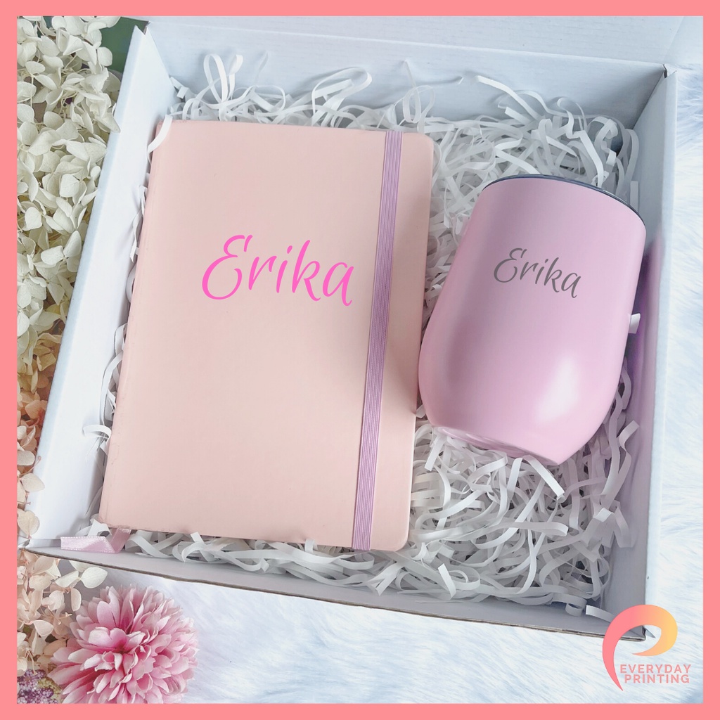 Personalized Egg Mug Tumbler and Pastel Hardbound Notebook / Journal Gift Bundle Set