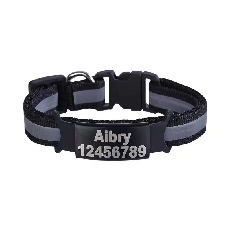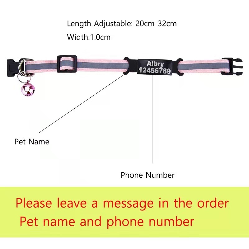 Personalized Engraved Cat Collar Bell Necklace Safety Reflective Nylon Collar Nameplate Custom ID