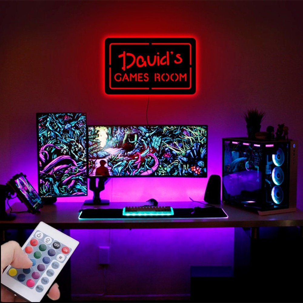 Personalized Gaming Room USB LED Wall Lamp Custom Wallpaper Name Square Wood Neon Night Light for Children Kids Gamer Game Roon Decoration