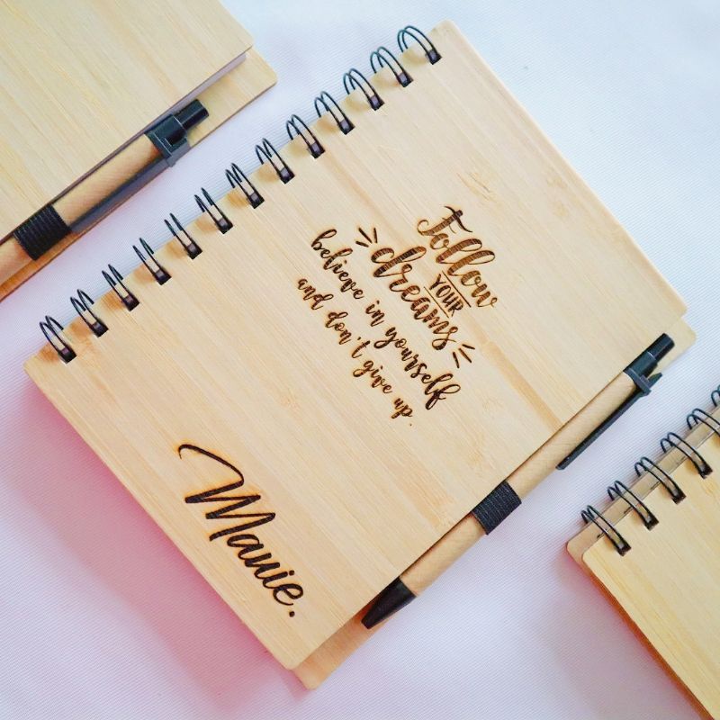 Personalized Gift Laser Engraved Bamboo Notebook w/ Craft Pen | Souvenir | Giveaway | Corporate Gift