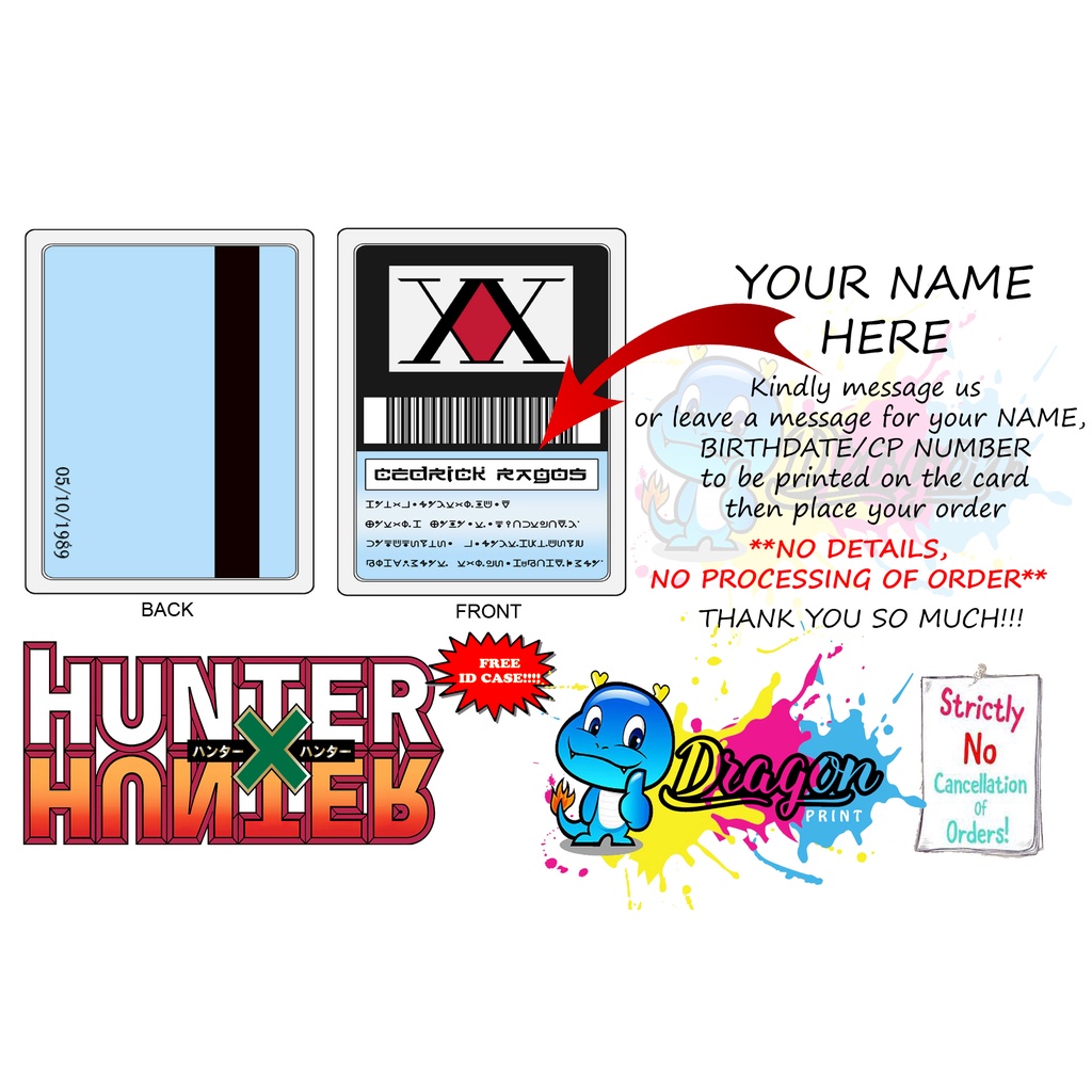 Personalized Hunter X Hunter License PVC Card