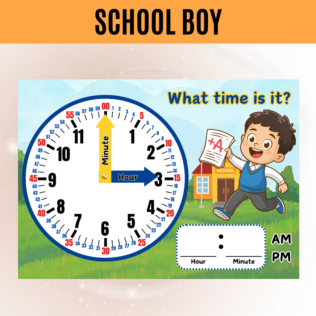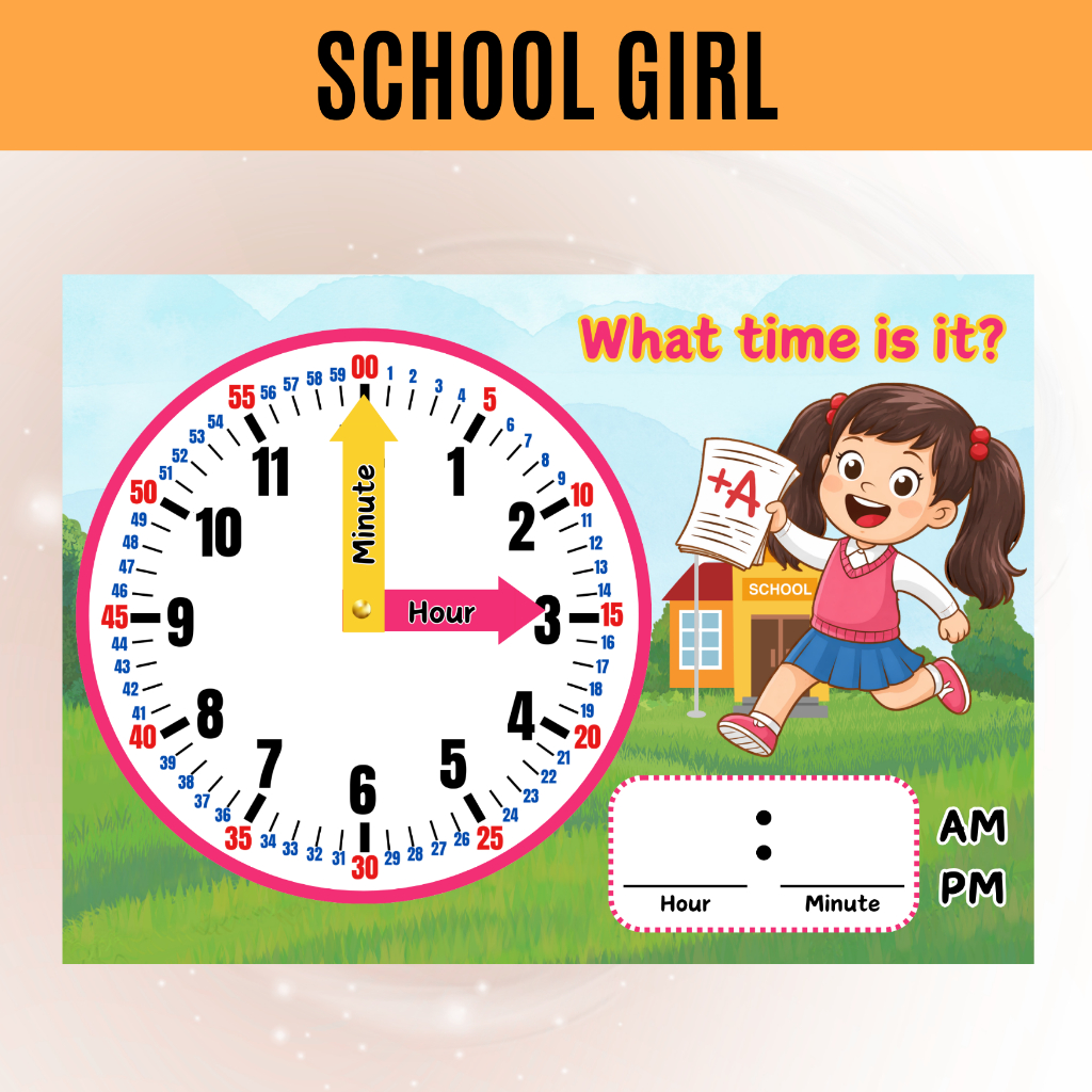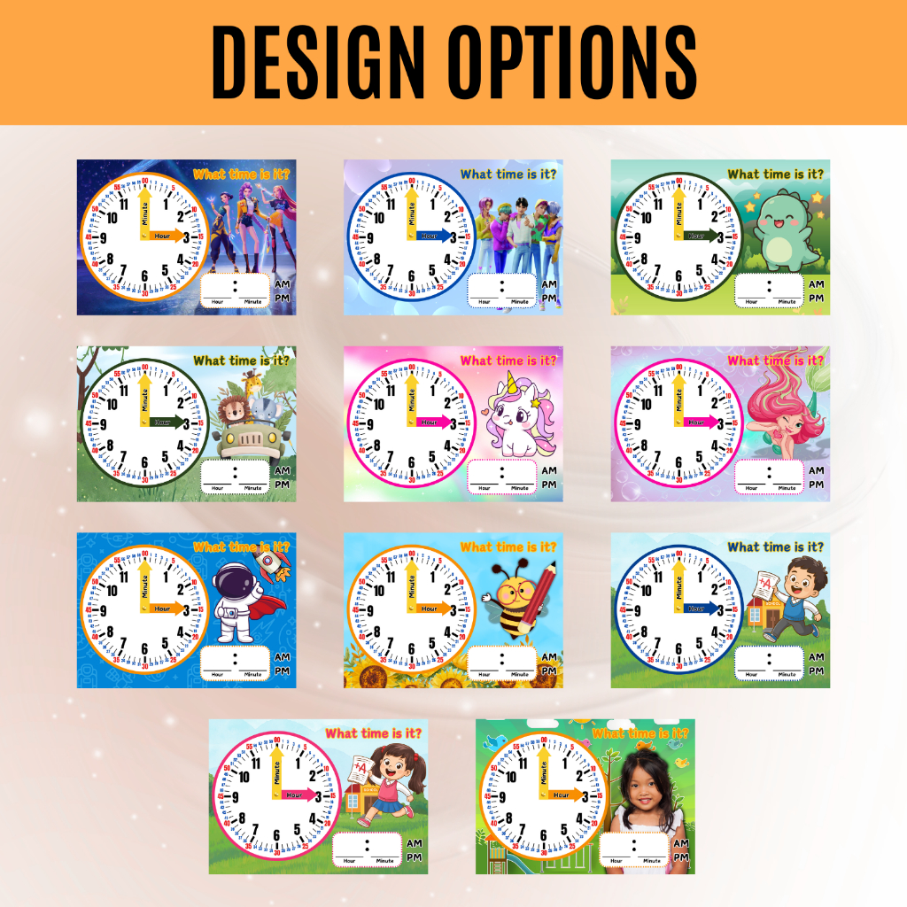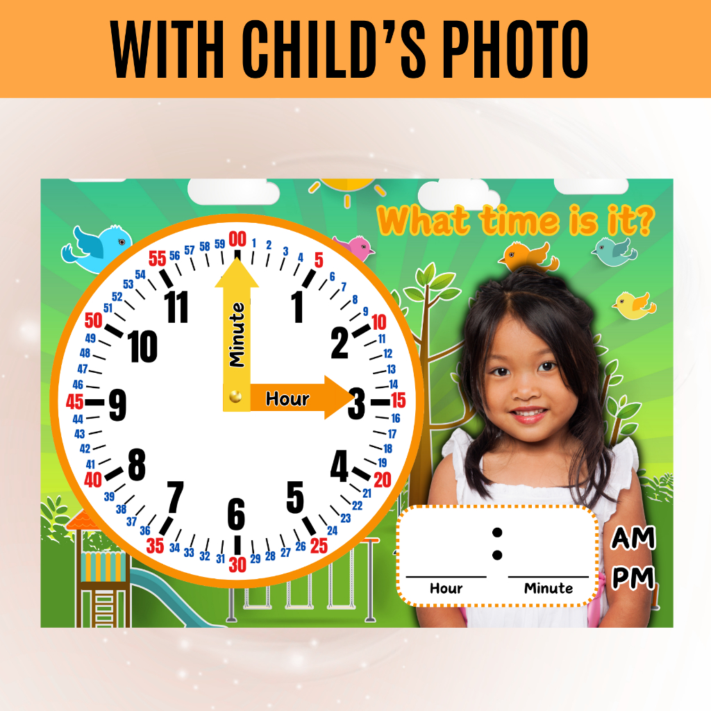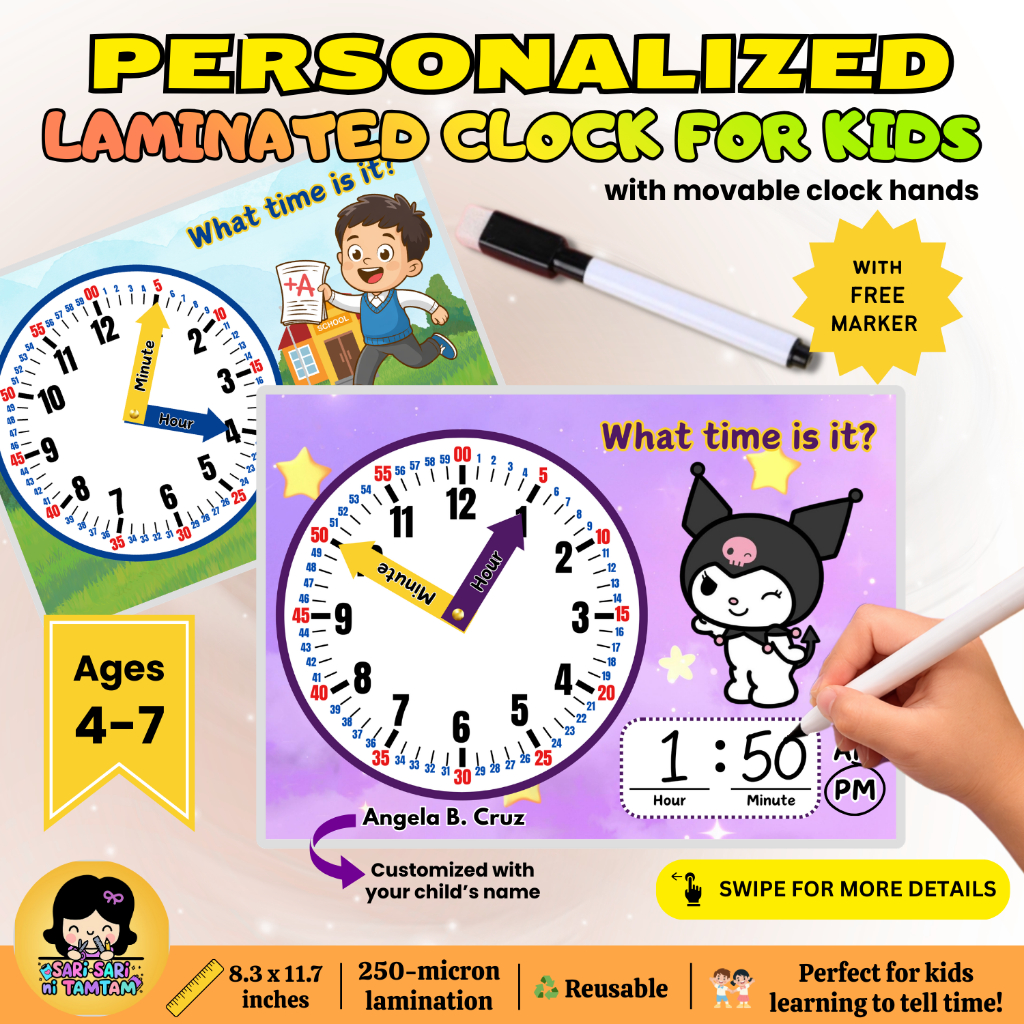PERSONALIZED LAMINATED LEARNING CLOCK FOR KIDS | TELLING TIME PRACTICE BOARD | FREE MARKER
