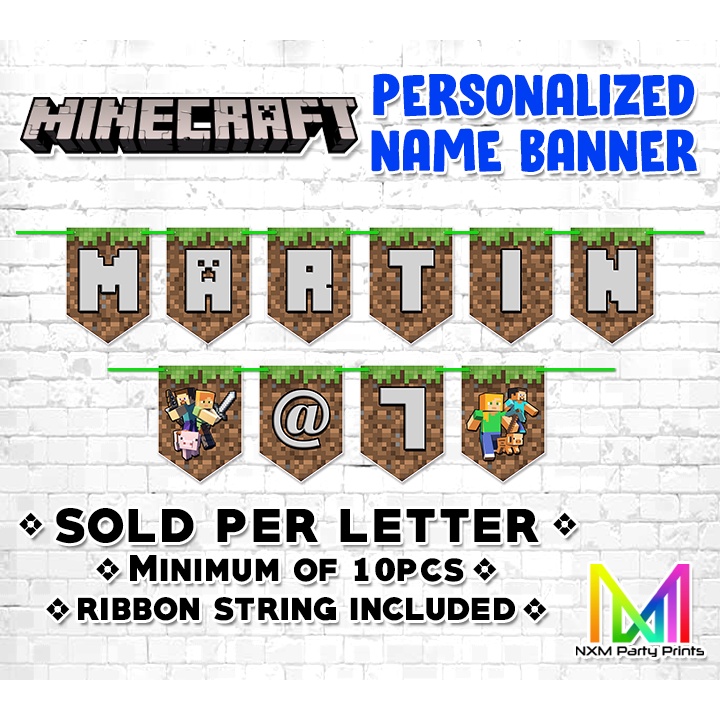 Personalized MINECRAFT NAME Banner Banderitas diy birthday decor