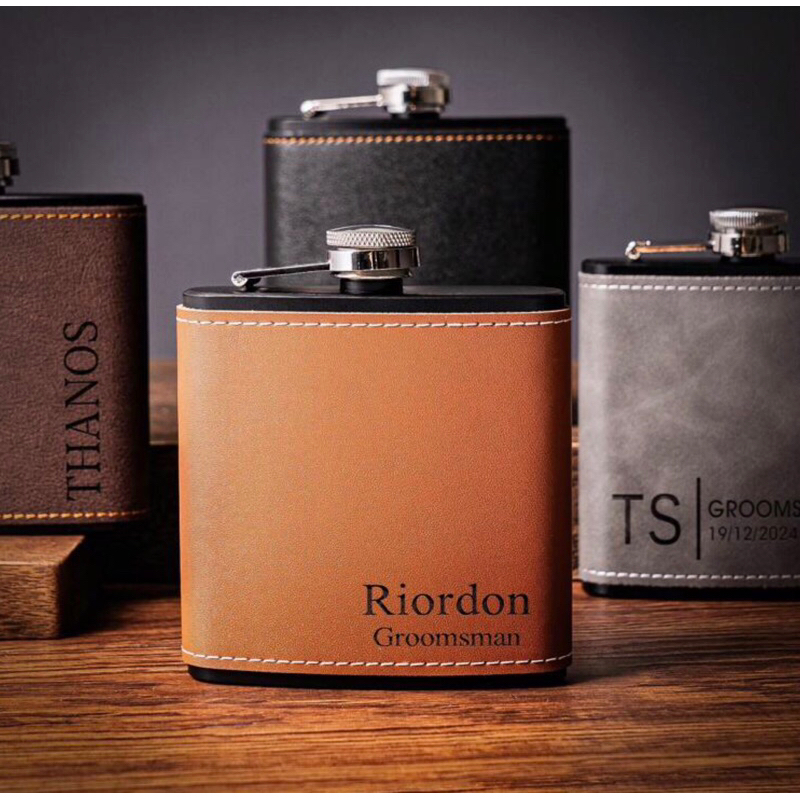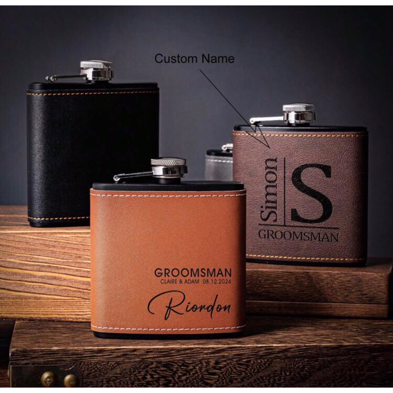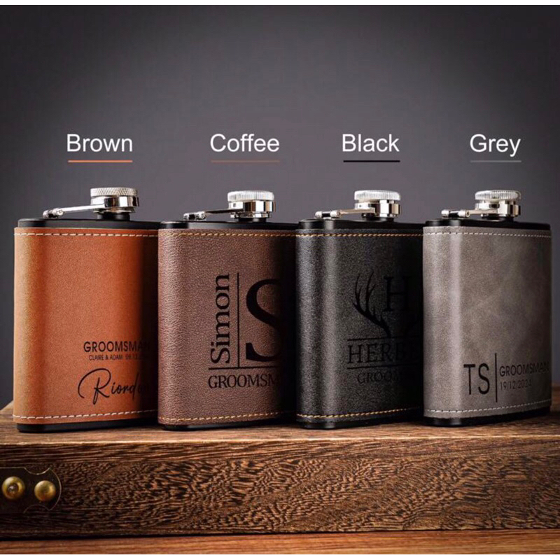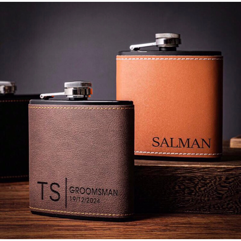 Personalized Men's Leather Whisky Flask