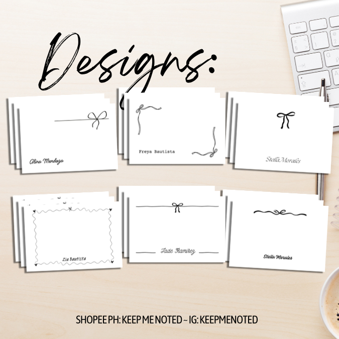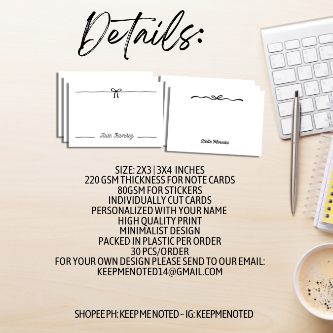 Personalized Minimalist Bow Ribbon Notecards Note Card Gift Cards Coquette Simple Plain Elegant