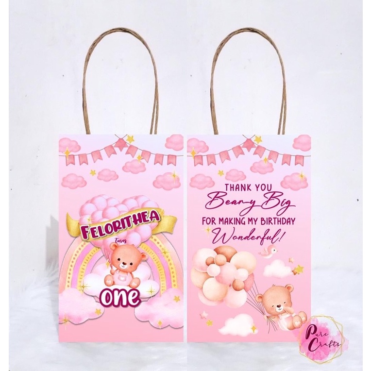 Personalized PINK TEDDY BEAR themed LOOTBAGS