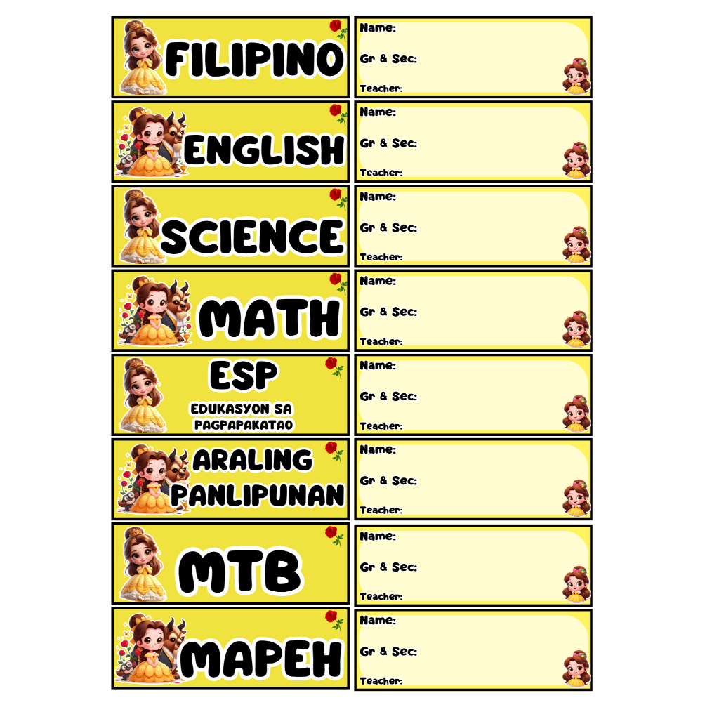 Personalized SUBJECT Sticker Label for School New Customized Notebook Sticker Disney Princess
