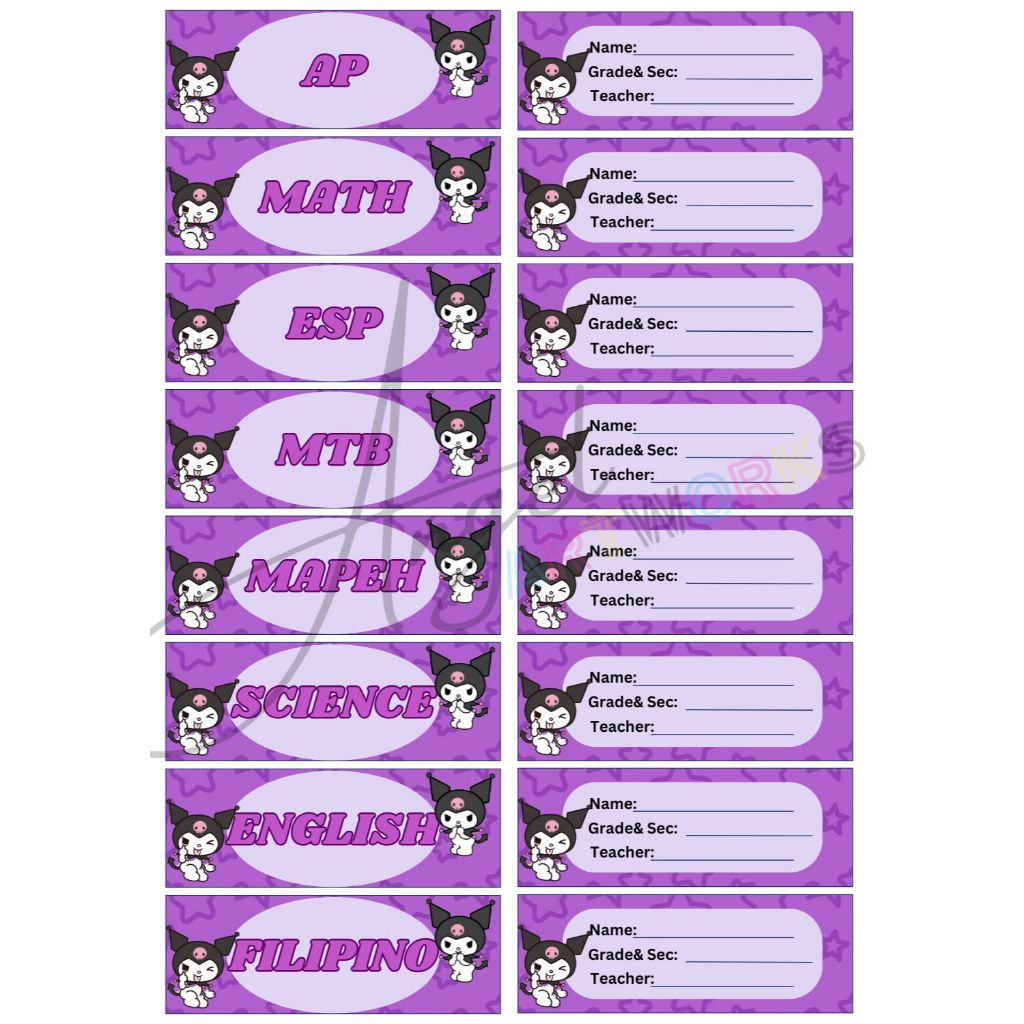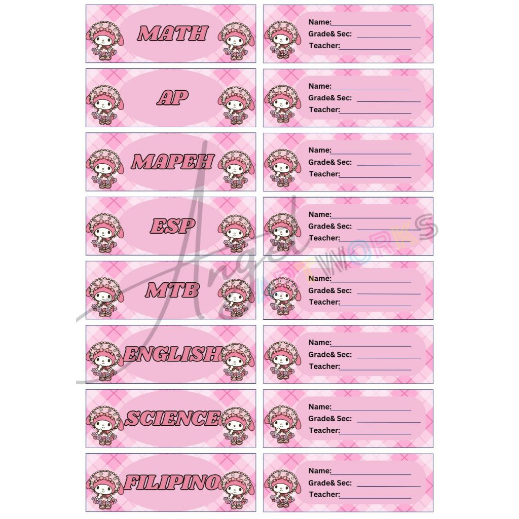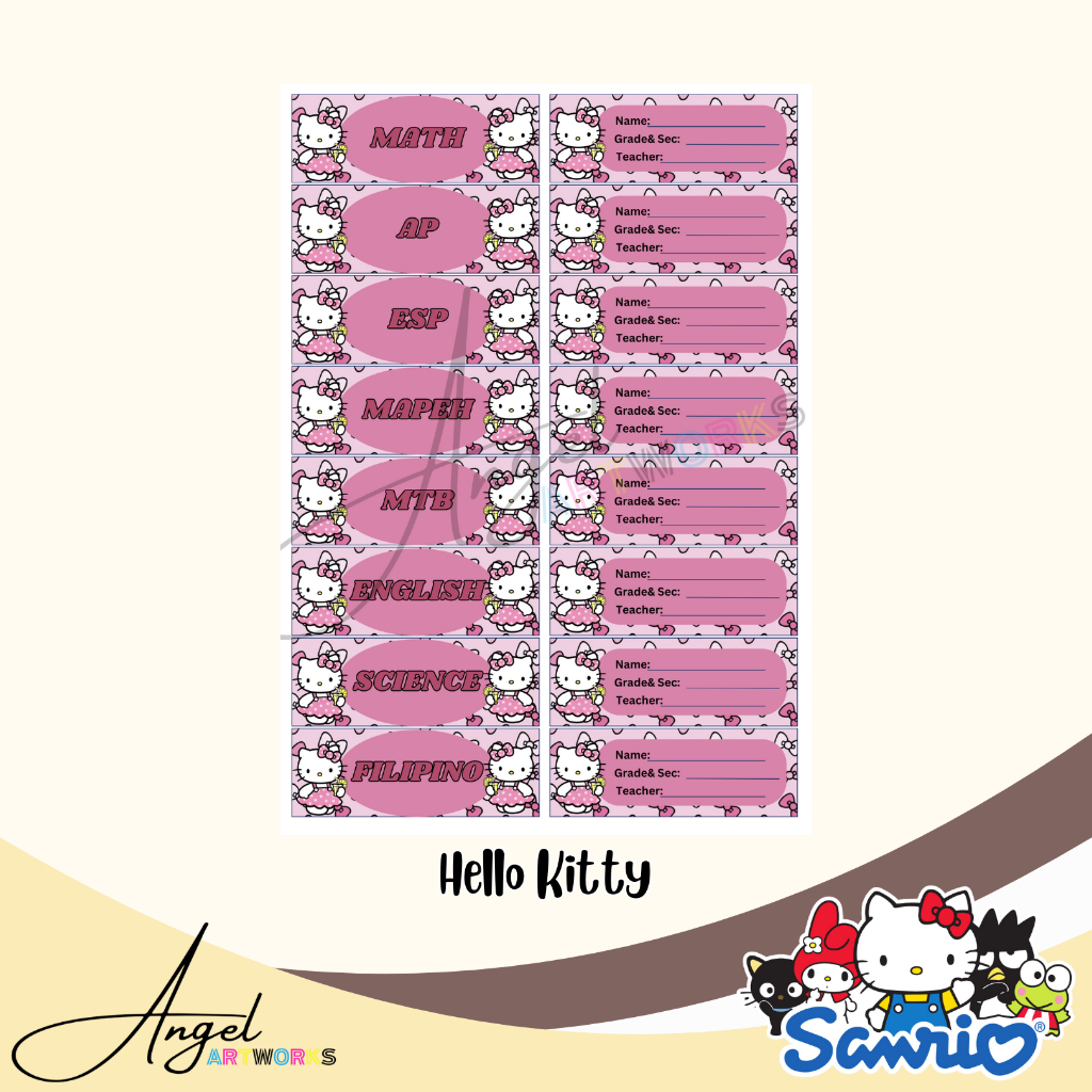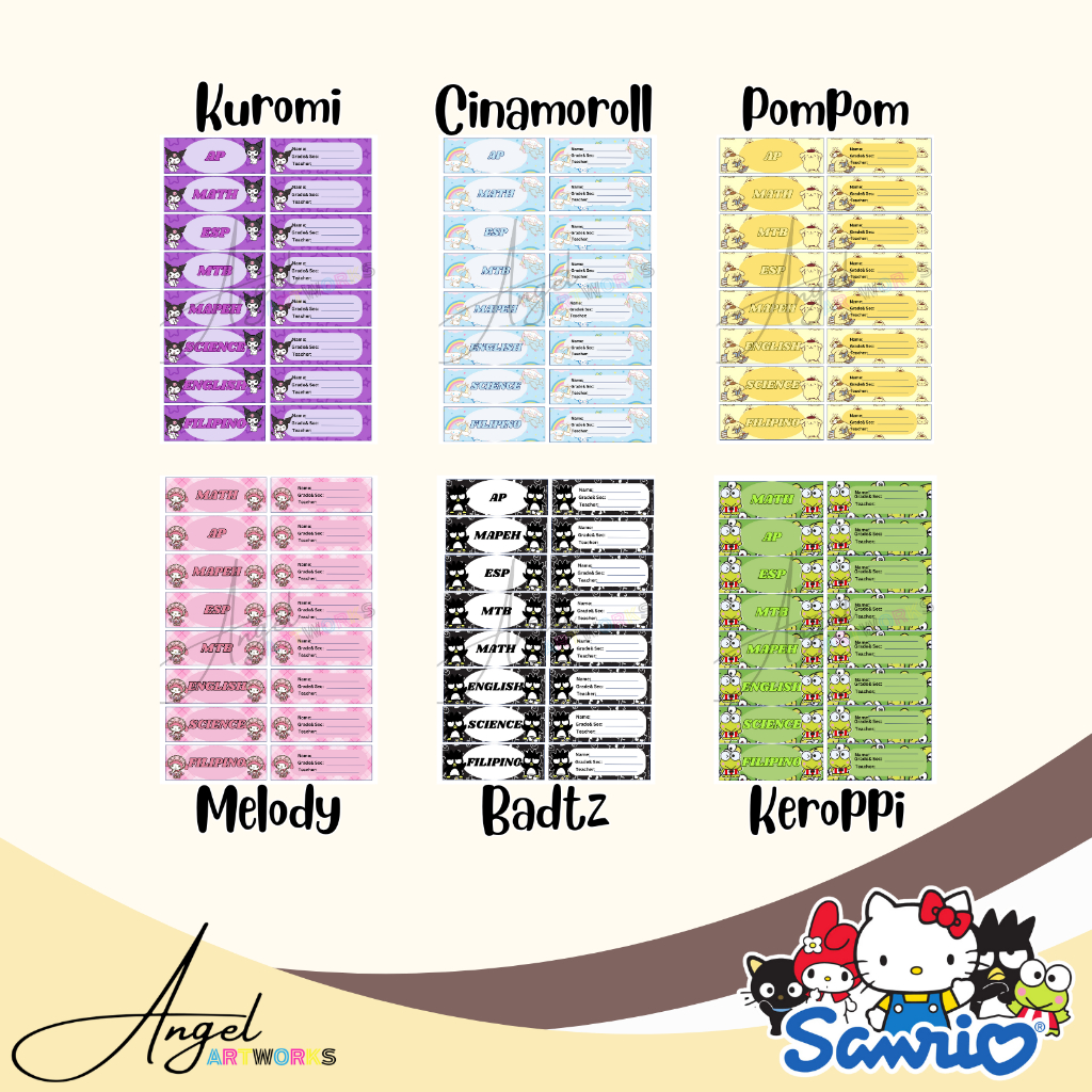 Personalized Subject and Name Label Stickers for School/Notebook (Sanrio Design)