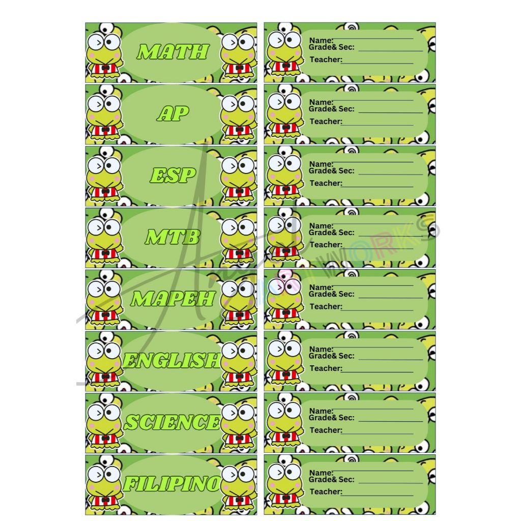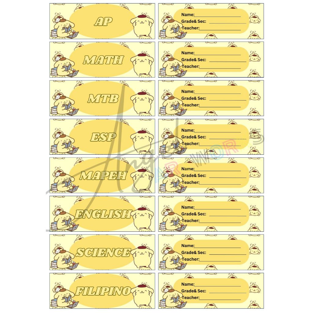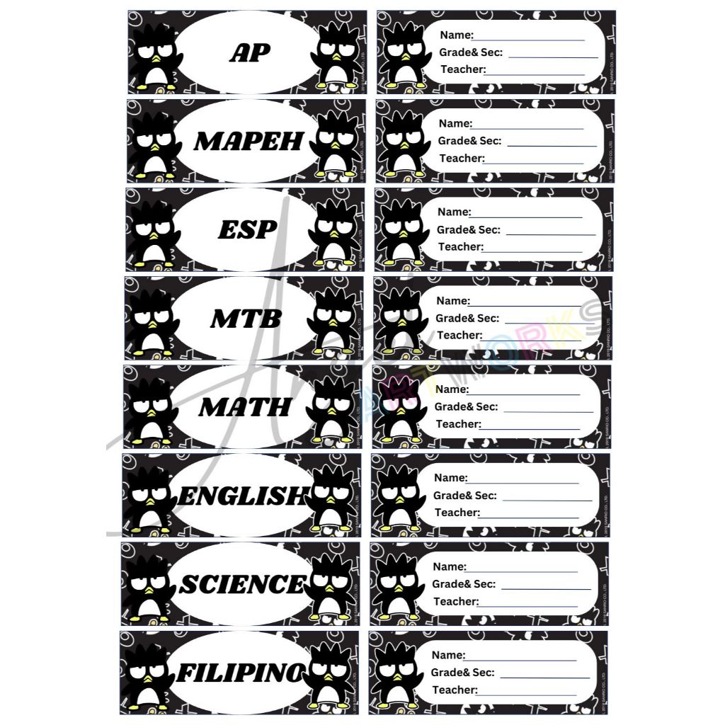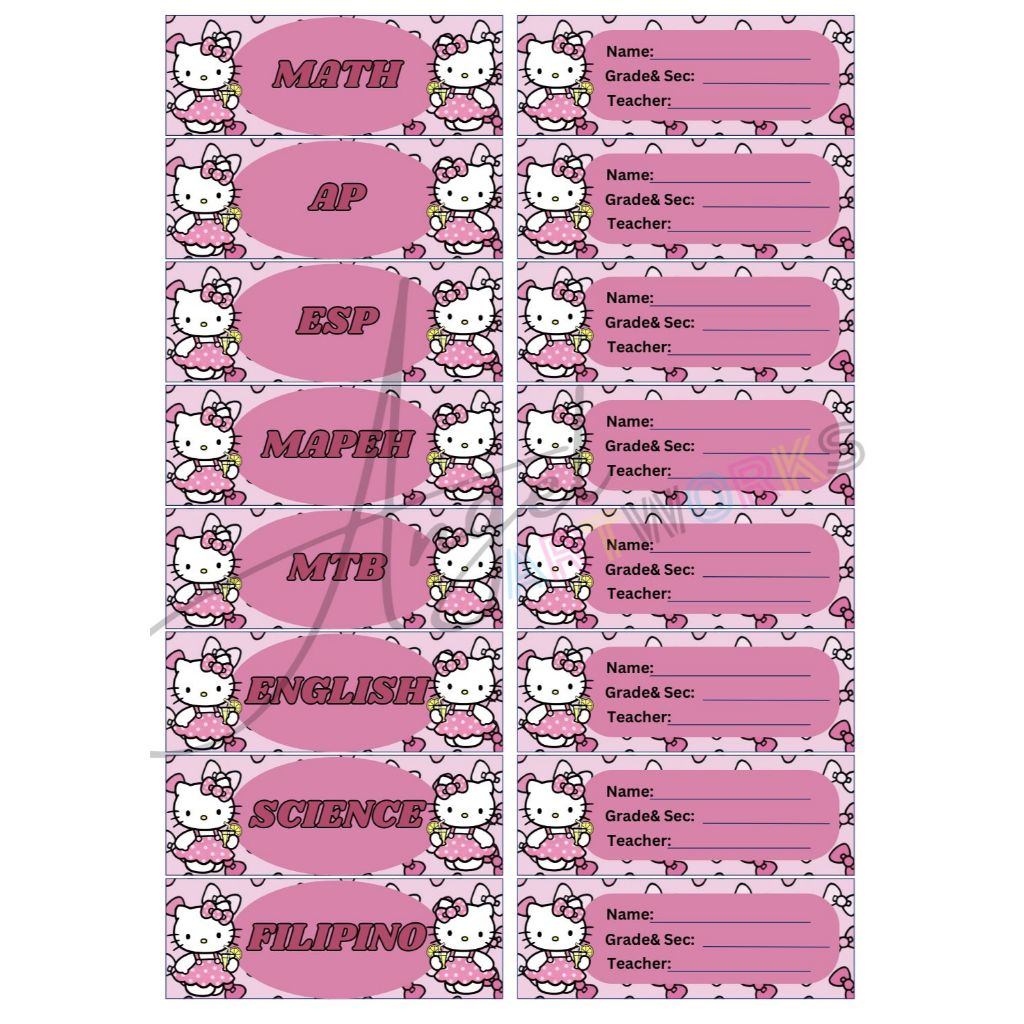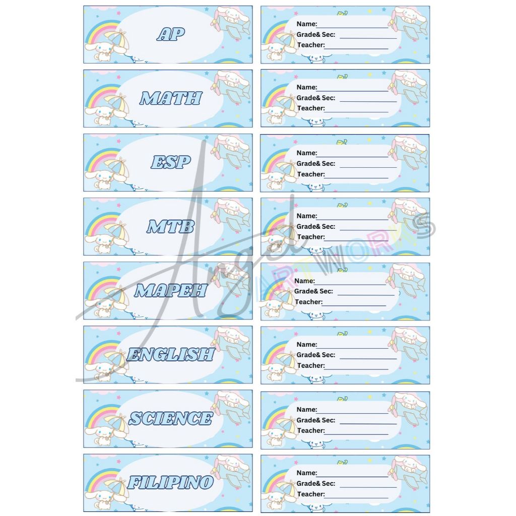 Personalized Subject and Name Label Stickers for School/Notebook (Sanrio Design)