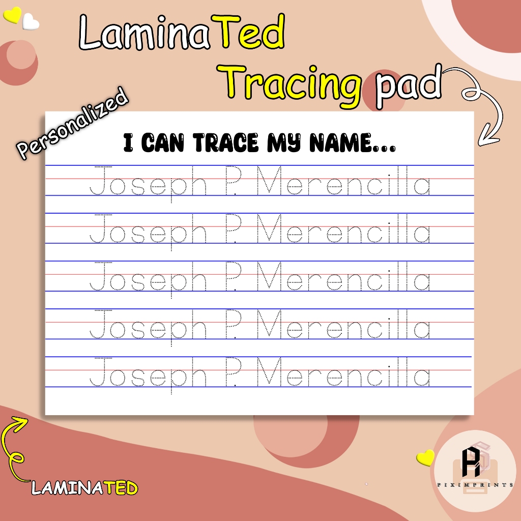 Personalized Tracing Pads for Kids (Laminated)(A4 Size) | PiXimprints