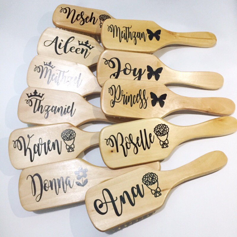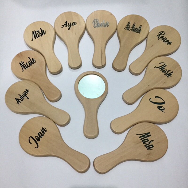 Personalized Wooden Hairbrush Wooden Comb Mirror / Large Medium Small Sizes for Souvenir Giveaway