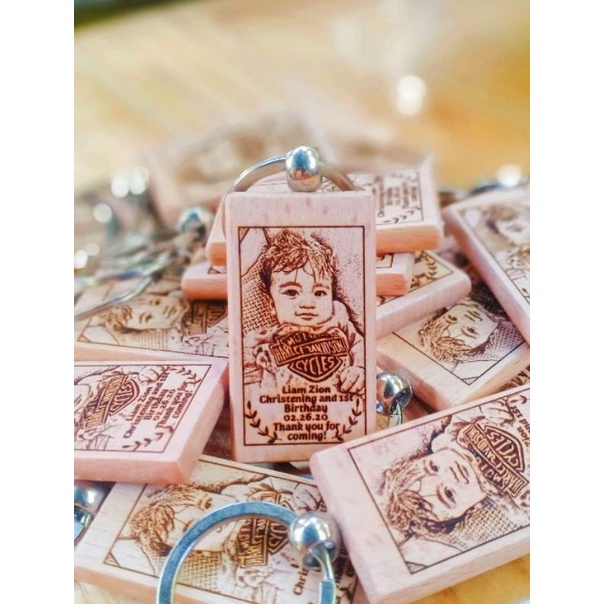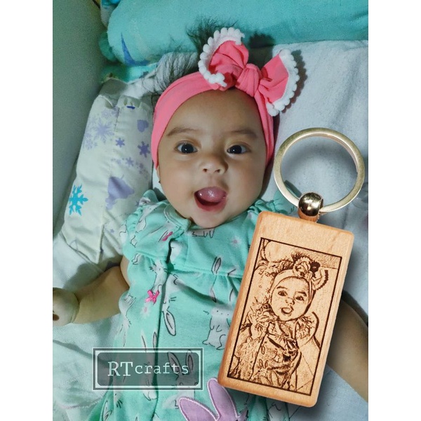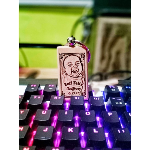 Personalized Wooden Keychain with photo and text Laser Engrved