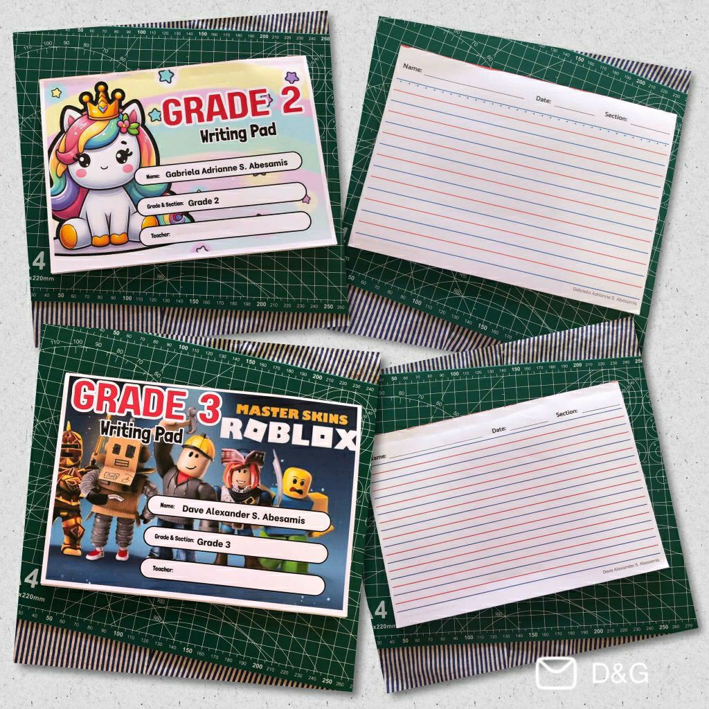 Personalized Writing Pad Daycare to Grade 4 - 50pages in a Pad with name each paper
