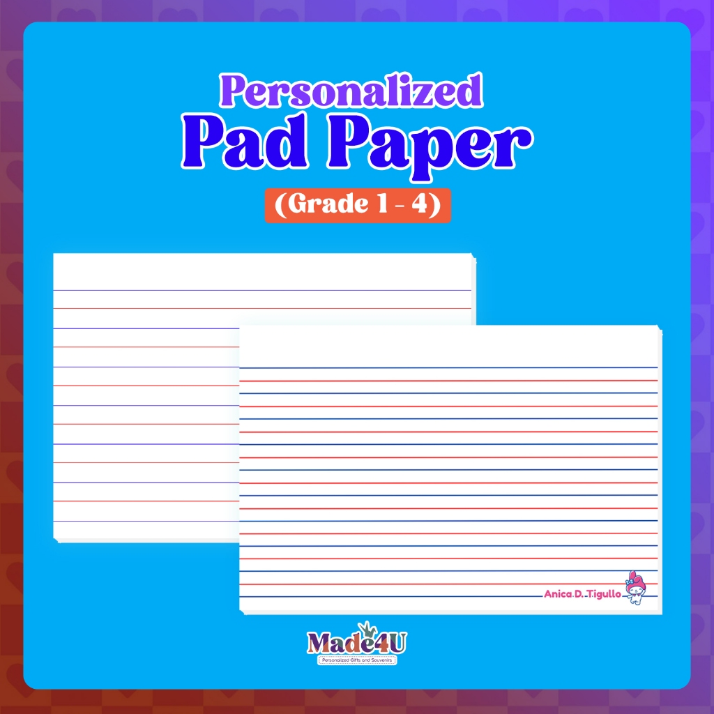 Personalized Writing Pad Paper (Kindergarten, Grade 1, Grade 2, Grade 3, Grade 4)