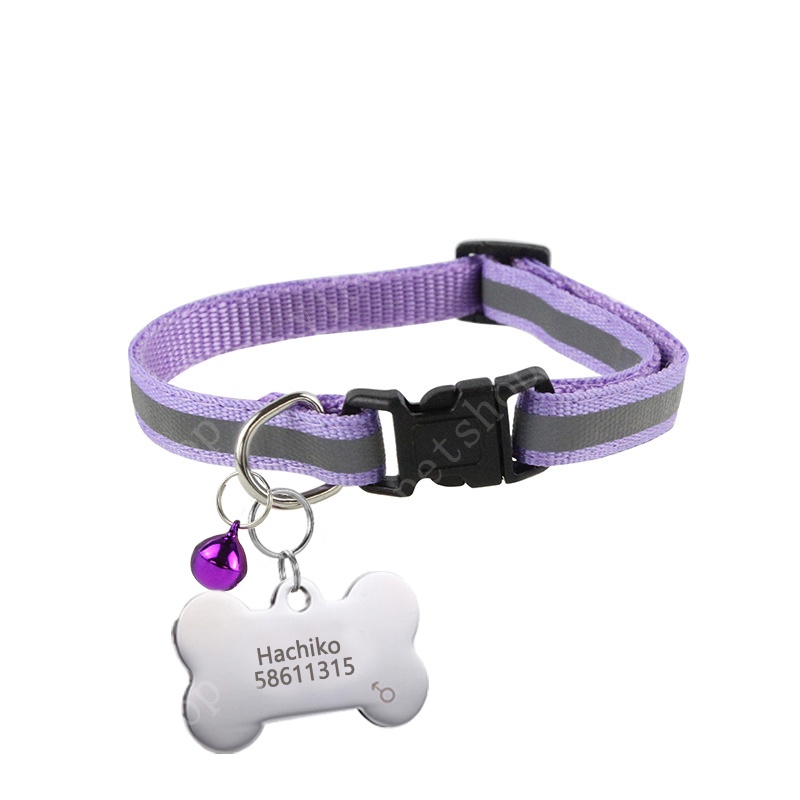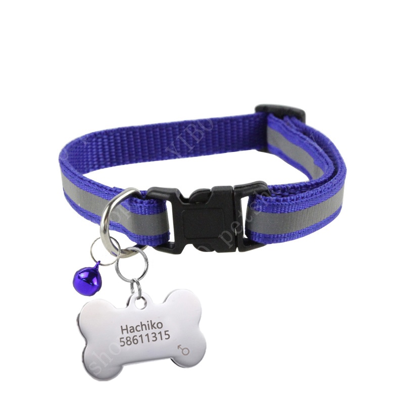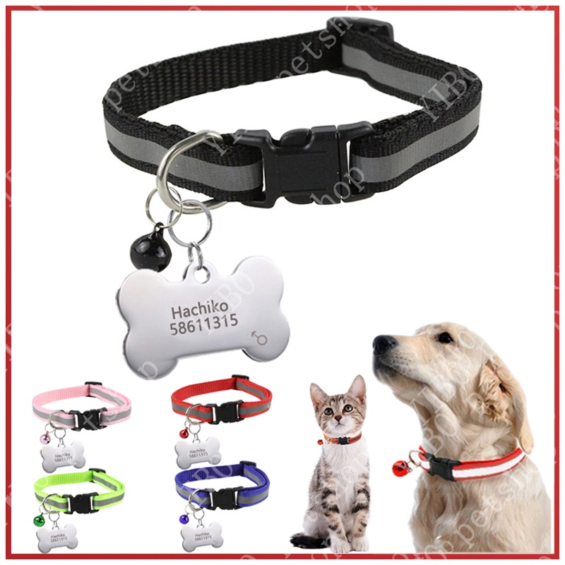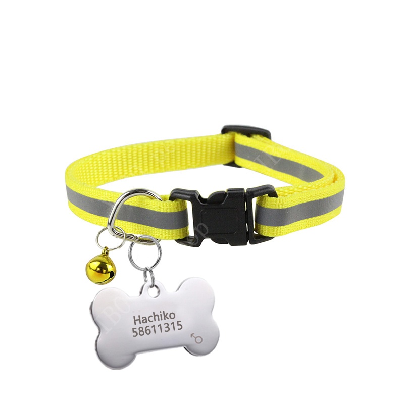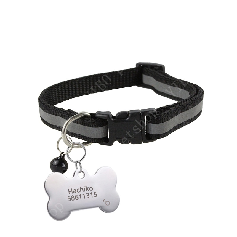 Personalized dog tag Stainless Steel Name Engraved ID Tags Pet Reflective Collar for Puppy Dog Cat Accesories Adjust 19-32cm