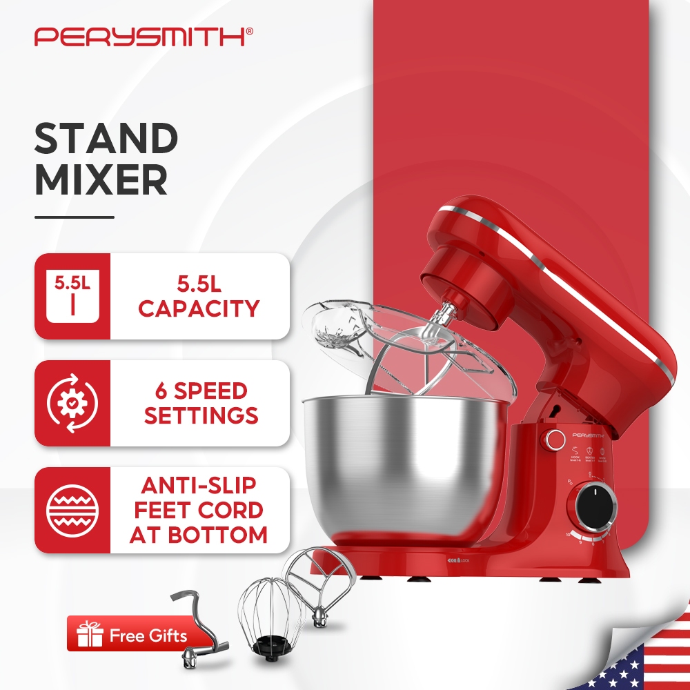 Perysmith PS5500 II 5.5L Electric Stand Mixer for Baking with Bowl and 3 Whisks 10 Speed Settings