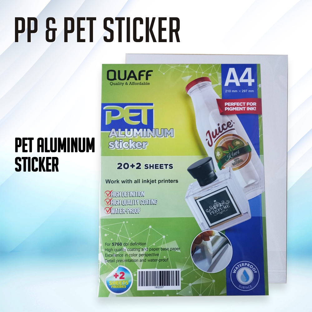 Pet Aluminum Sticker | Pearl Sticker Glossy | Label sticker A4 Size (20sheets / pack)