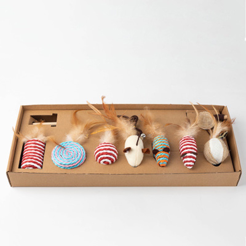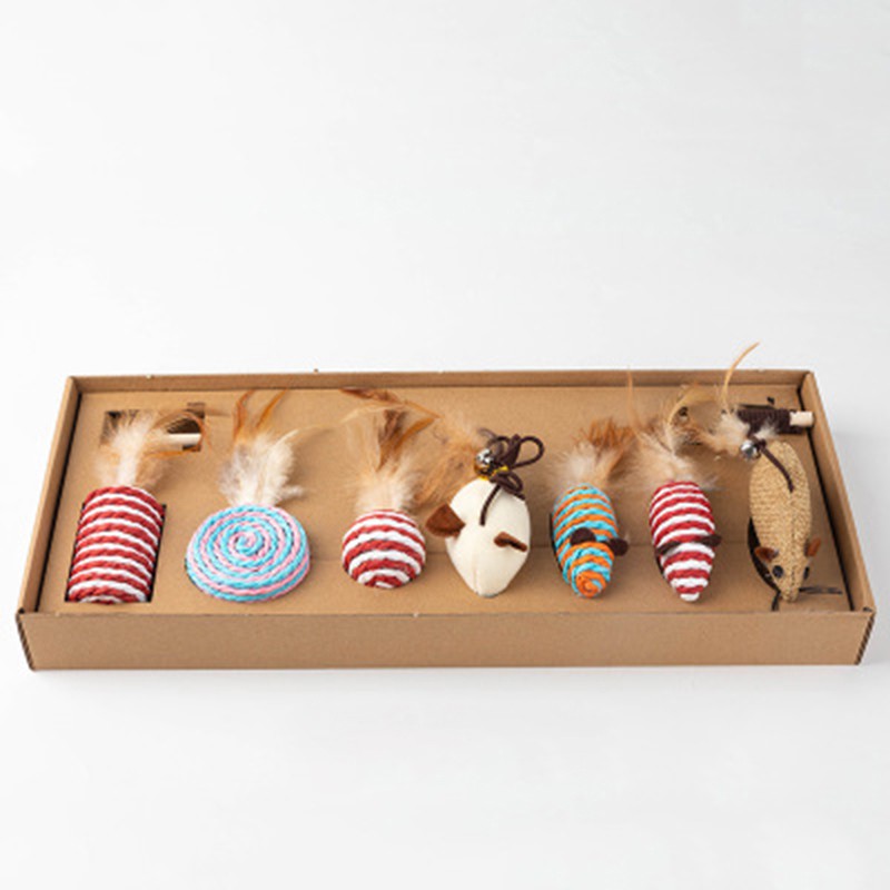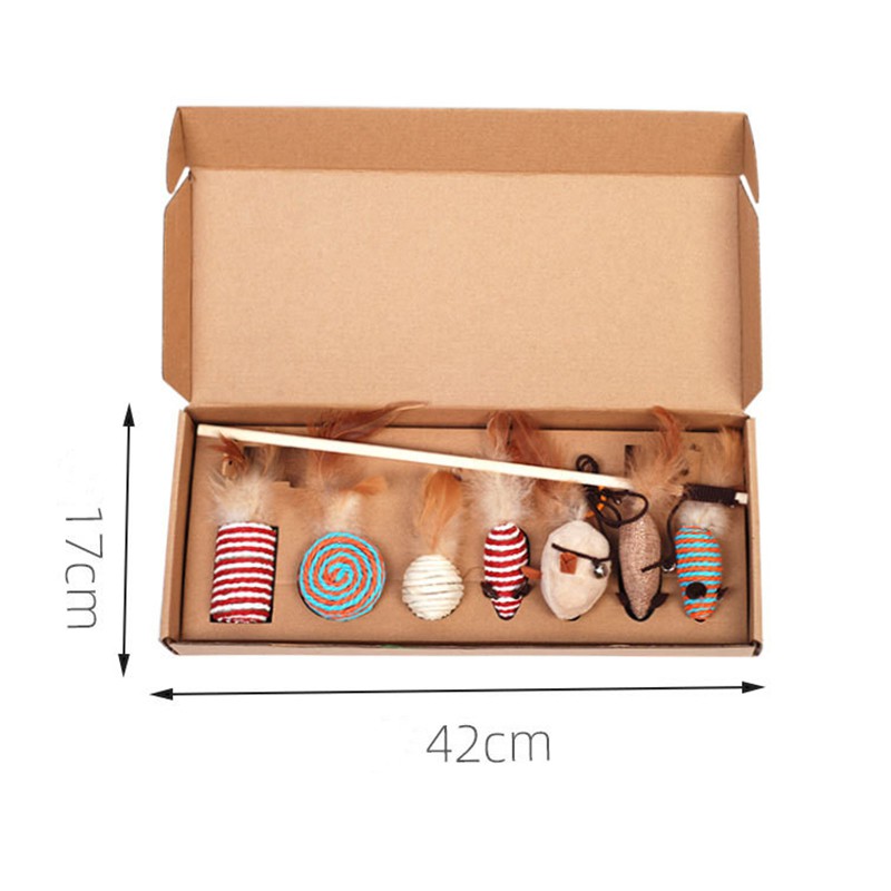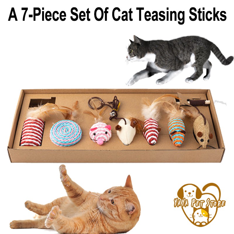 Pet Funny Cat Stick 7 Seven-Piece Toy Combination Set Small Fish Wooden