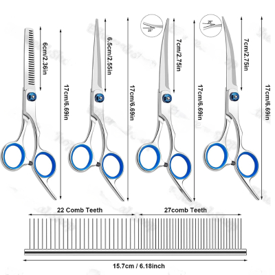 Pet Grooming Scissors Kit Curved Dog Cat Grooming Scissors Pet Hair Cutting Barber Tools Set