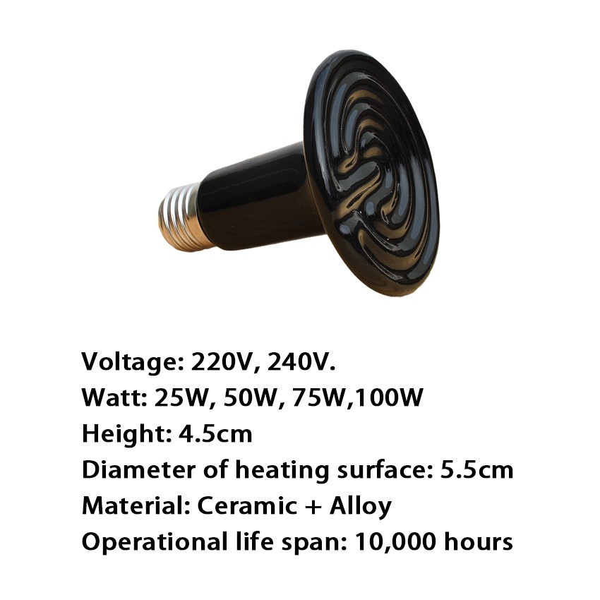 Pet Heating Light Bulb Infrared Black Ceramic Emitter Heat Lamp Bulb For Reptile Animals Heater