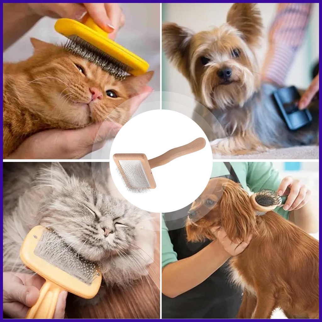 Pet Pin Brush Extra Long Pin Flat Slicker Brush For Cats And Dogs Professional Dog Grooming Brush With Non-Slip gelaoph