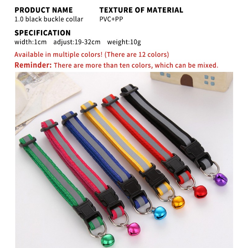 Pet Reflective Collar Adjustable Pet collar Cat Dog collar Safety Buckle Bell Neck Strap