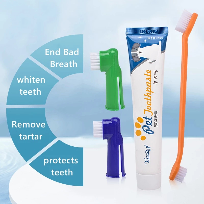 Pet Toothbrush / Toothpaste Set Dental Care Teeth Cleaning For Dog And Cat Edible Toothpaste Oral