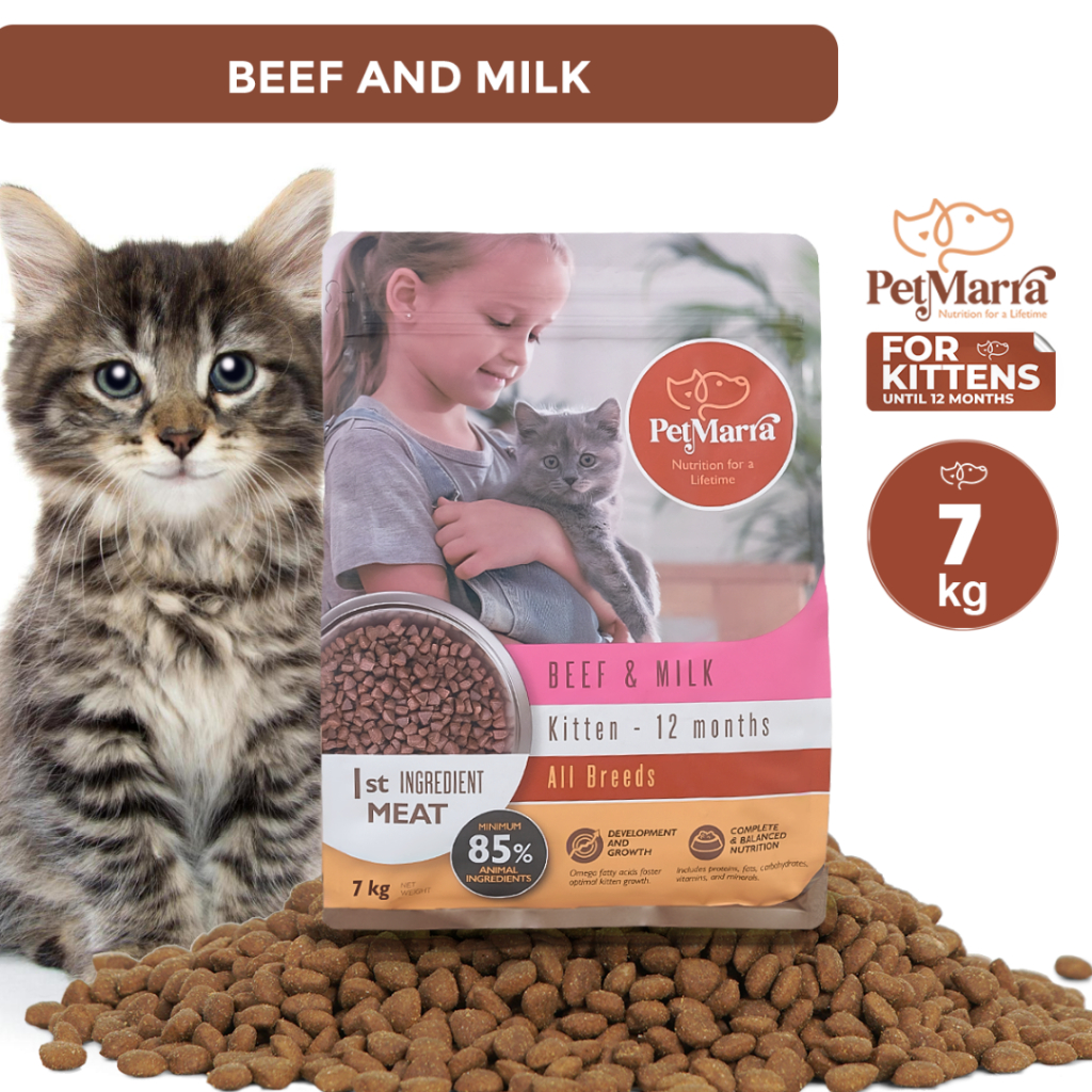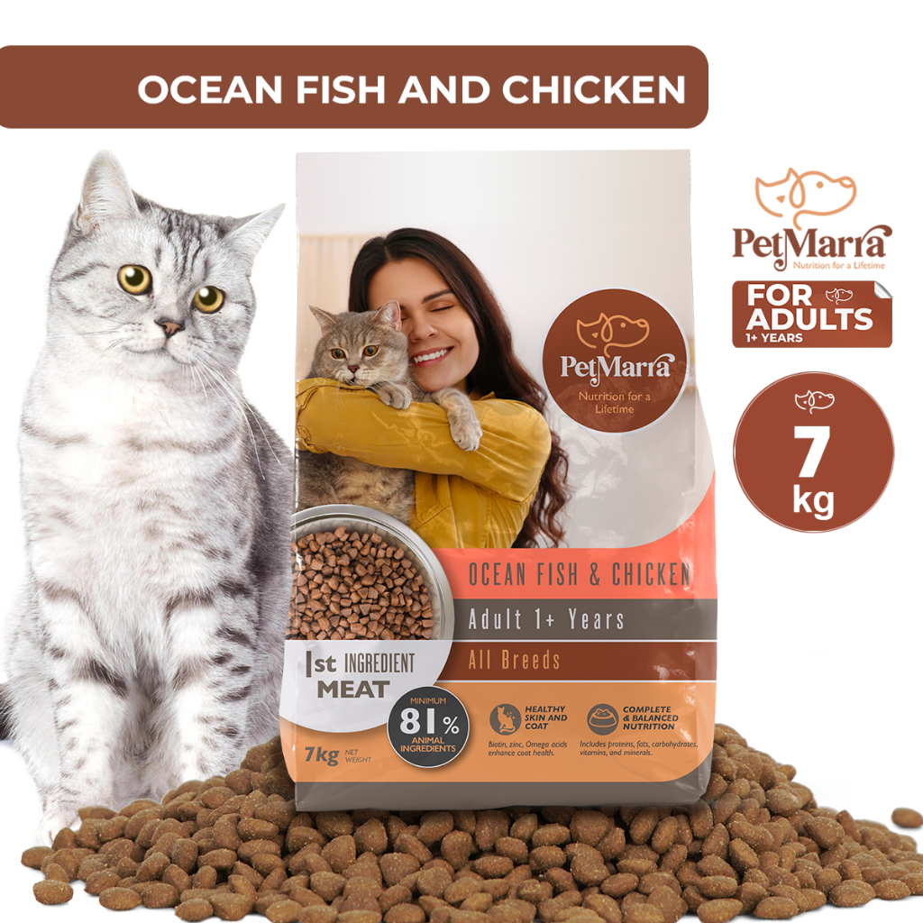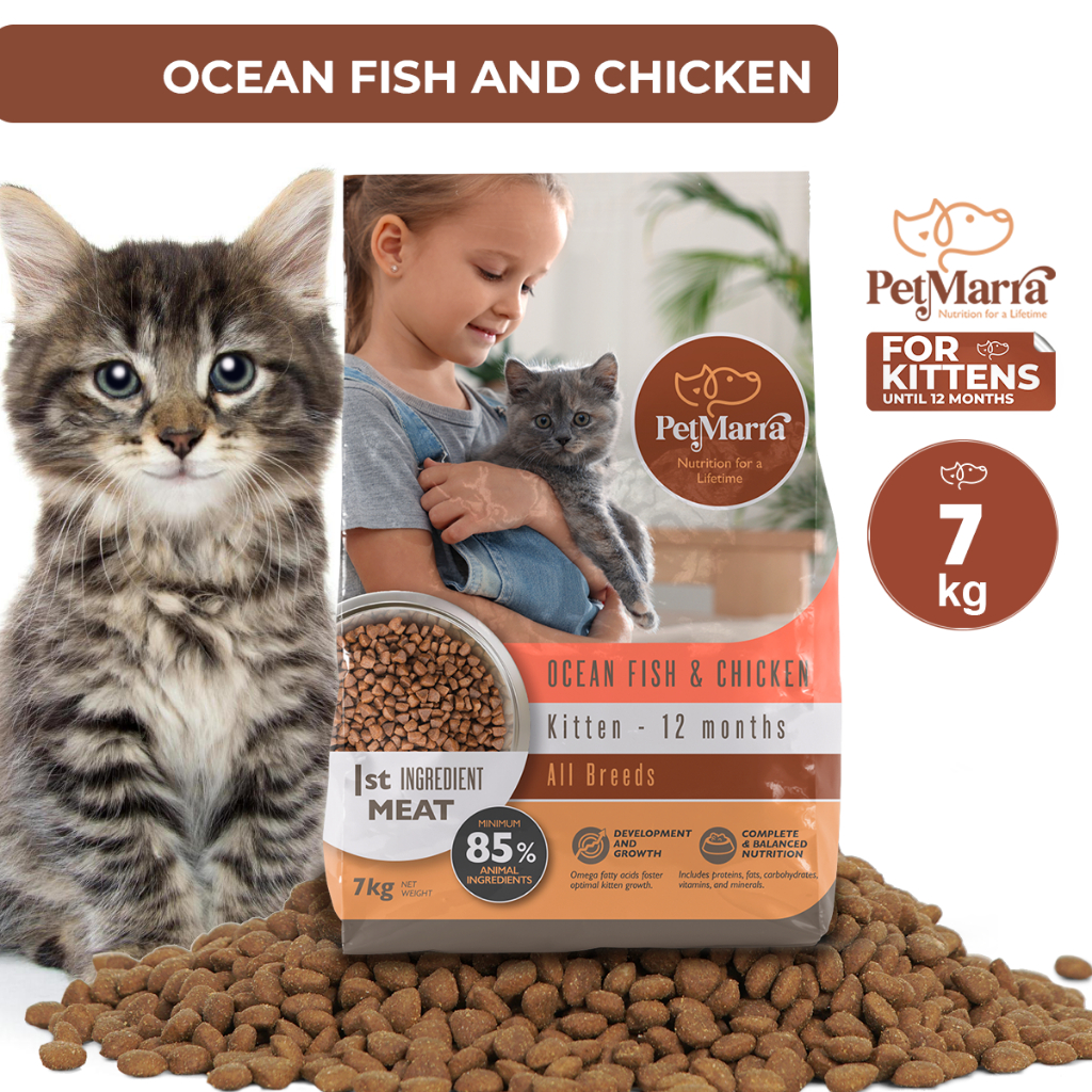 PetMarra Kitten and Adult Cat Dry Food Oceanfish Chicken Liver Beef Milk Flavor 7kg Collection