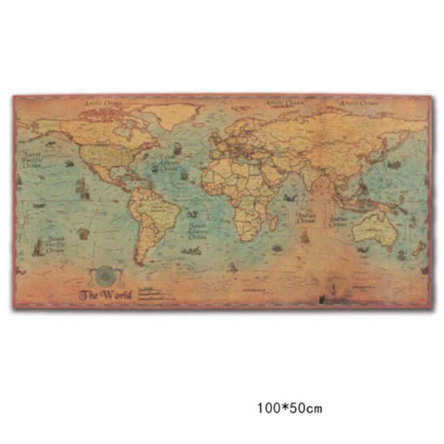 Peta Dunia Vintage World Map Wallpaper Living Room Poster