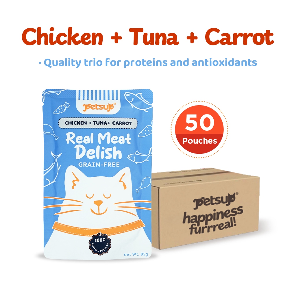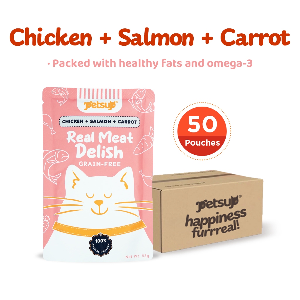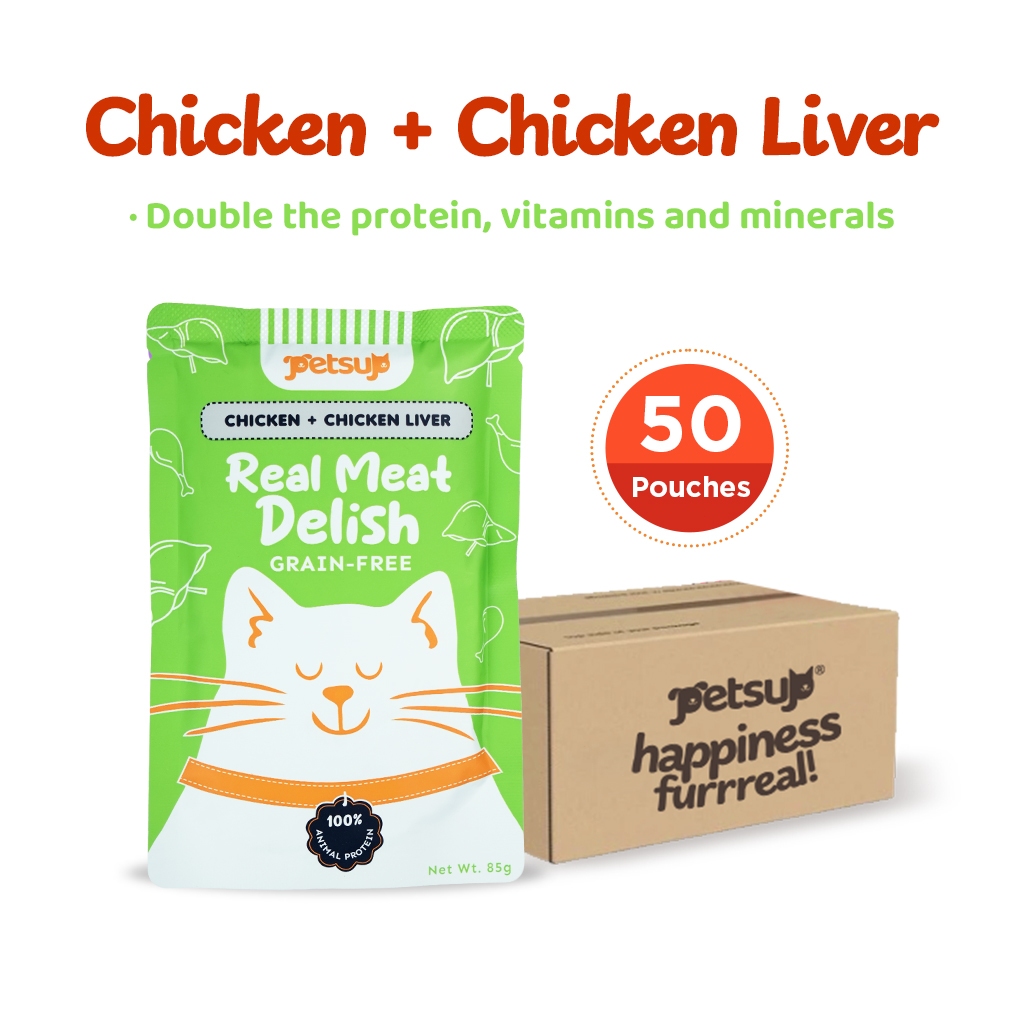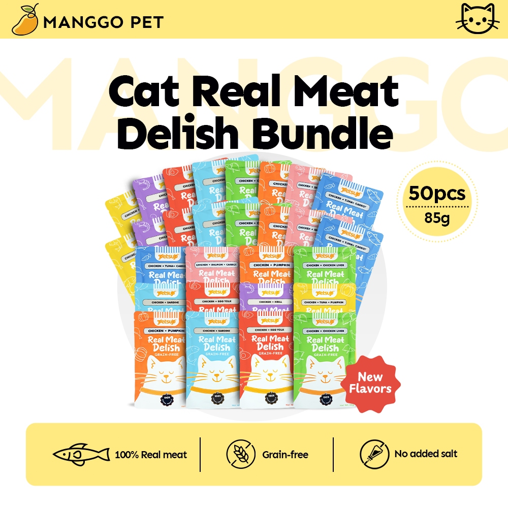 Petsup 50pcs Cat Wet Food Bundle Real Meat Delish High Protein Wet Food Treats for Kitten Adult Cats
