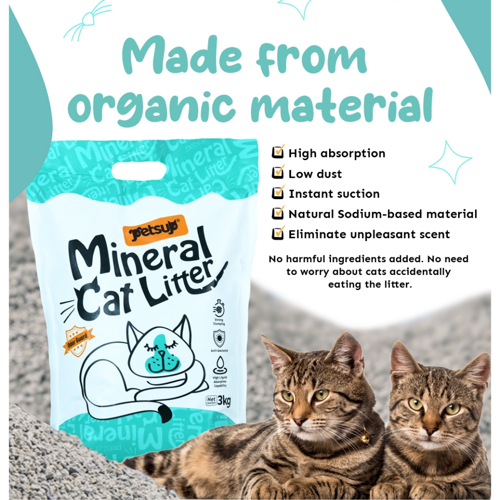 Petsup Cat Litter Sand 3kg Super Absorbent & Odor-Free Mineral Formula Easy Cleaning for Cats
