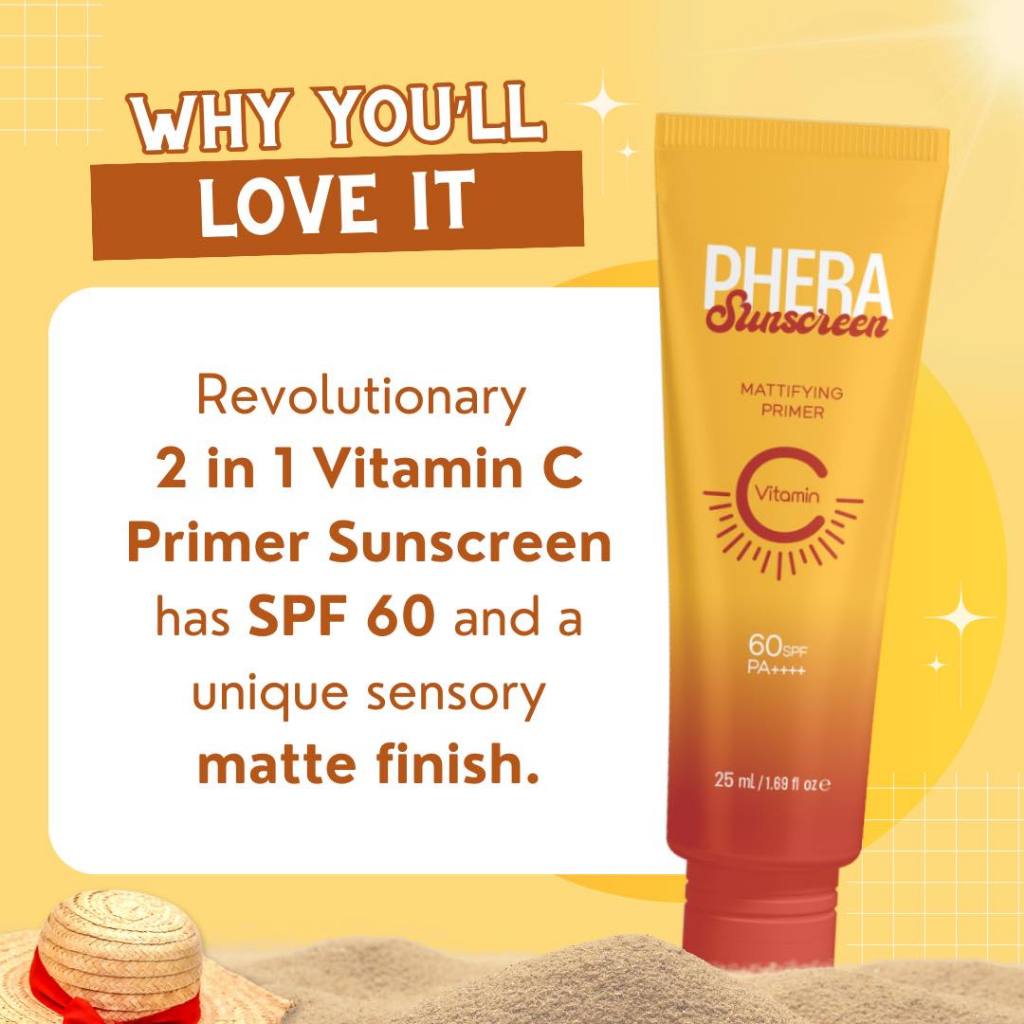 Phera Sunscreen and Mattifying Primer with Vitamin C, Niacinamide and Zinc PCA 40ml 6pcs