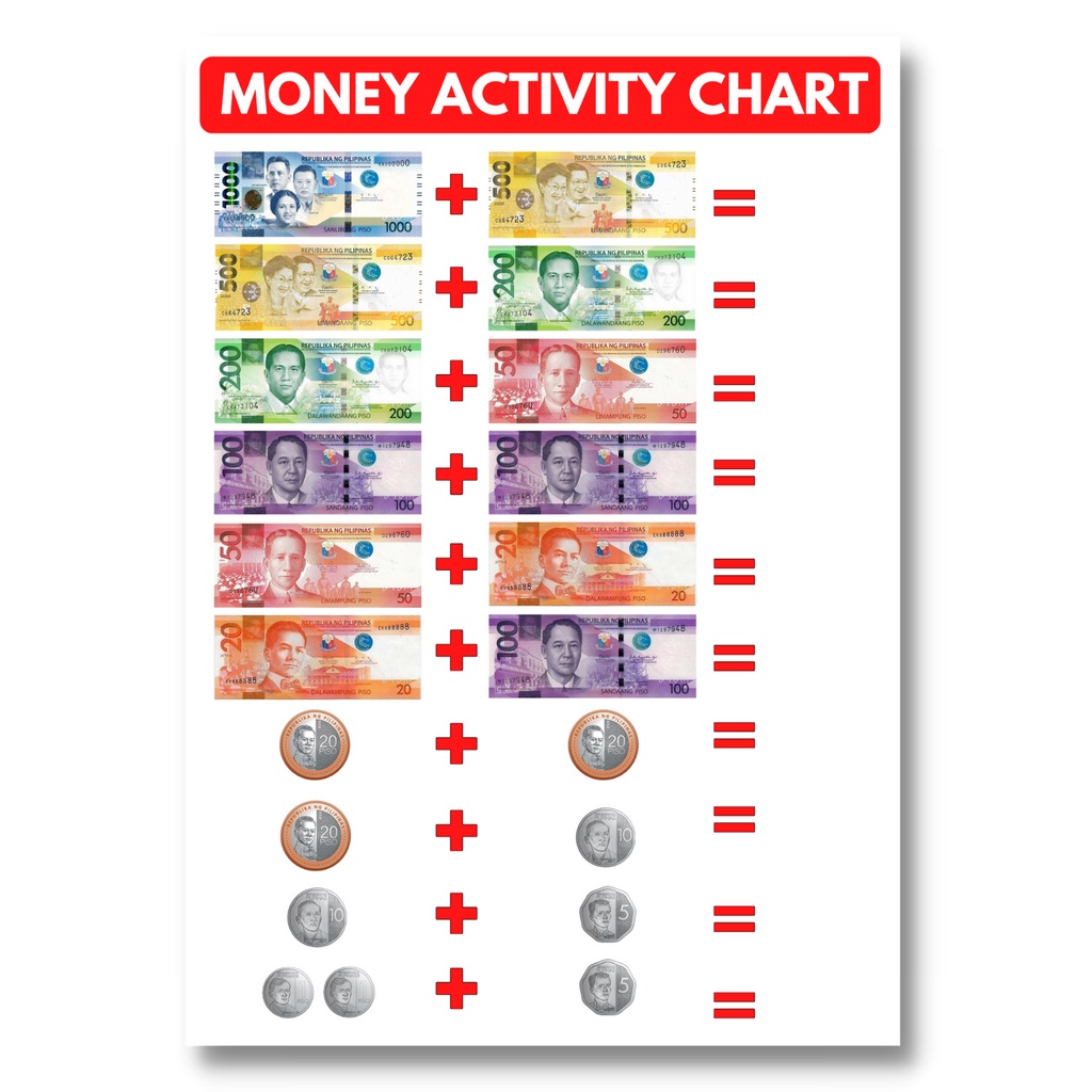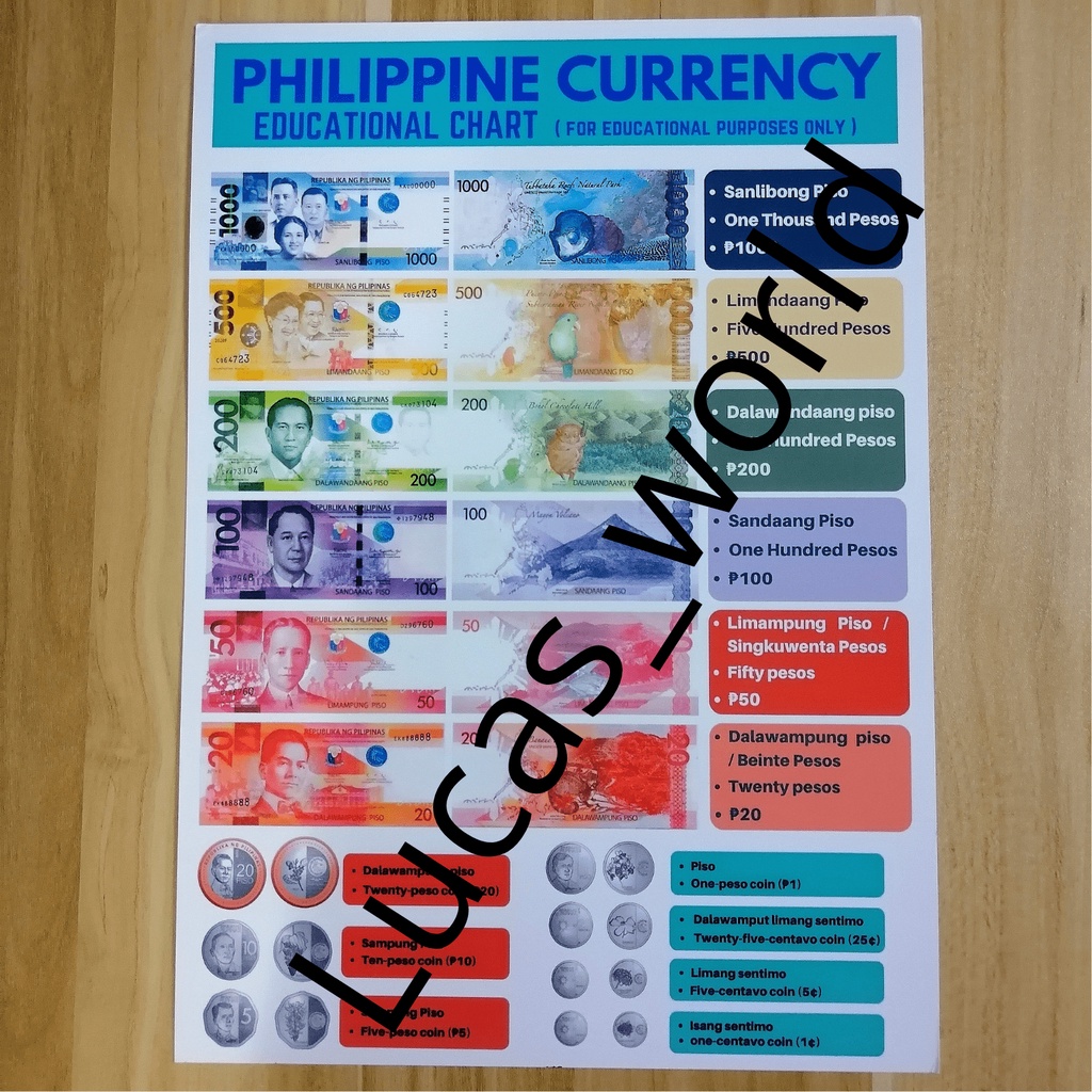 Philippine Money Currency Educational Wall Chart / Poster, A4 size, for kids