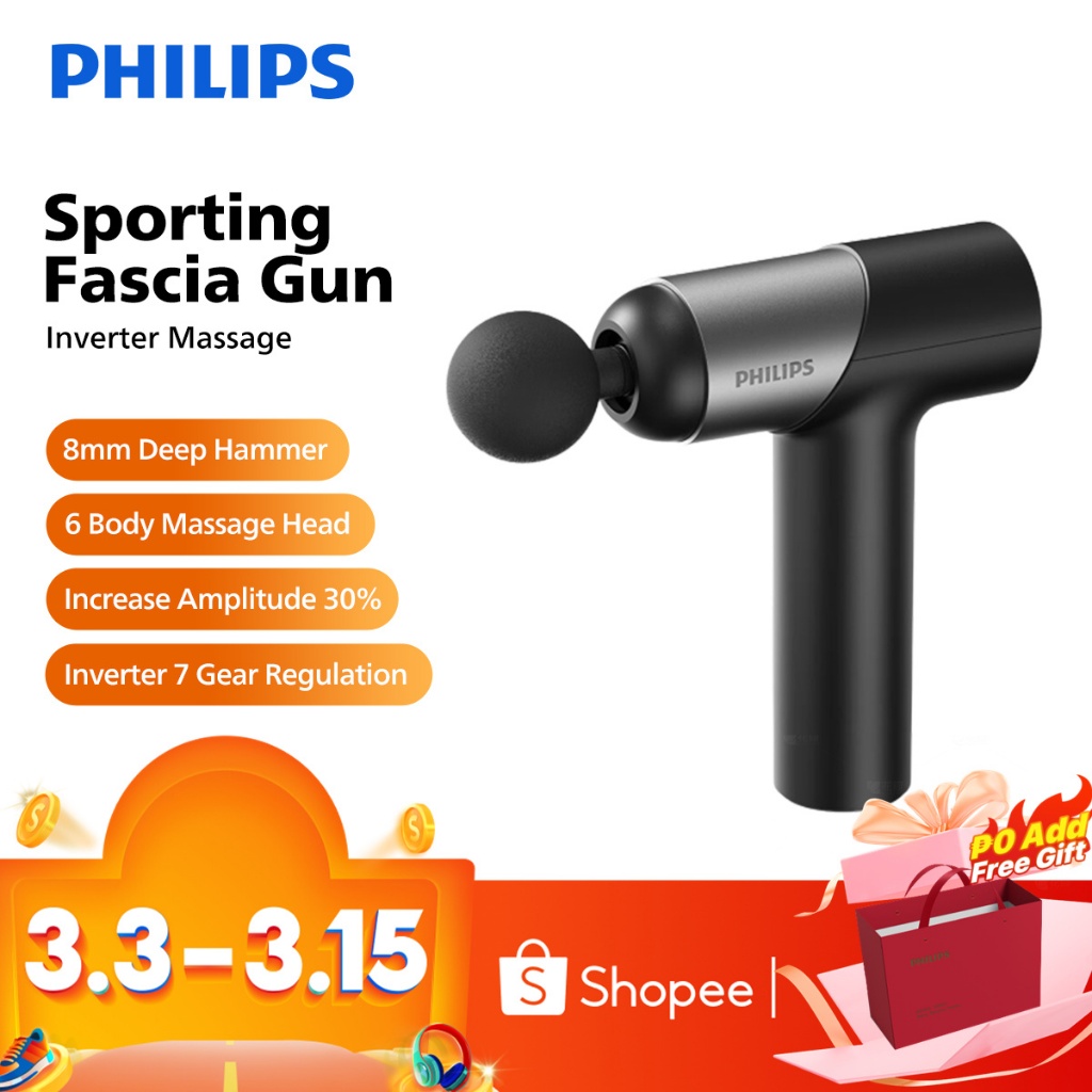 Philips Massage Gun Electronic Massager Vibration Fascial Gun Muscle Relaxation 3 & 6 Massage Heads