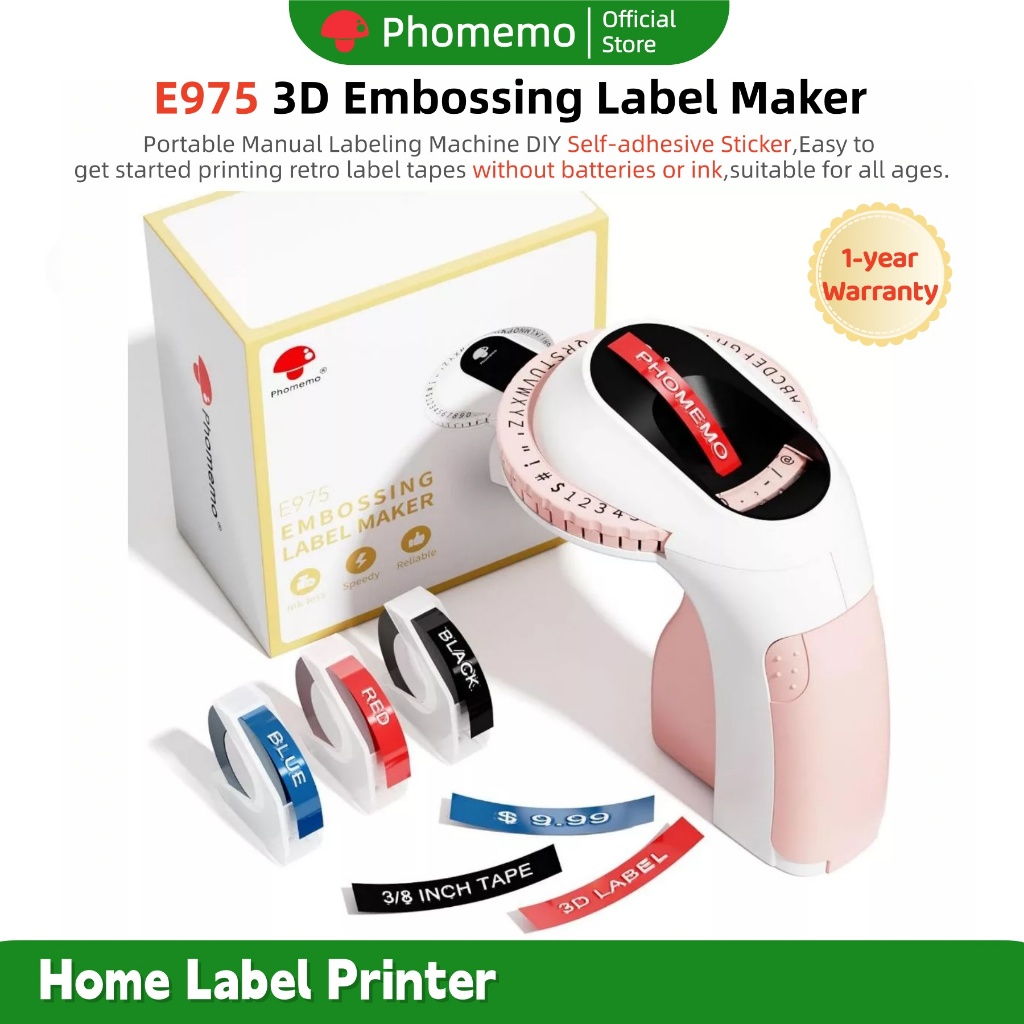 Phomemo 3D Embossing Label Maker E975 Portable Manual Labeling Machine DIY Self-adhesive Sticker,Typewriter with Tapes
