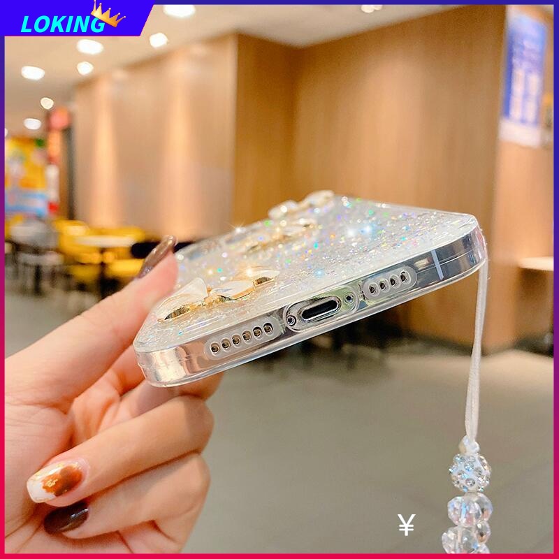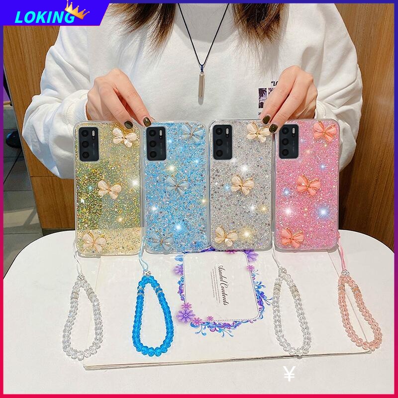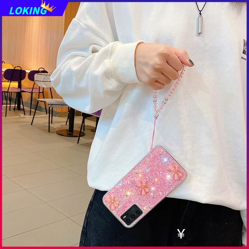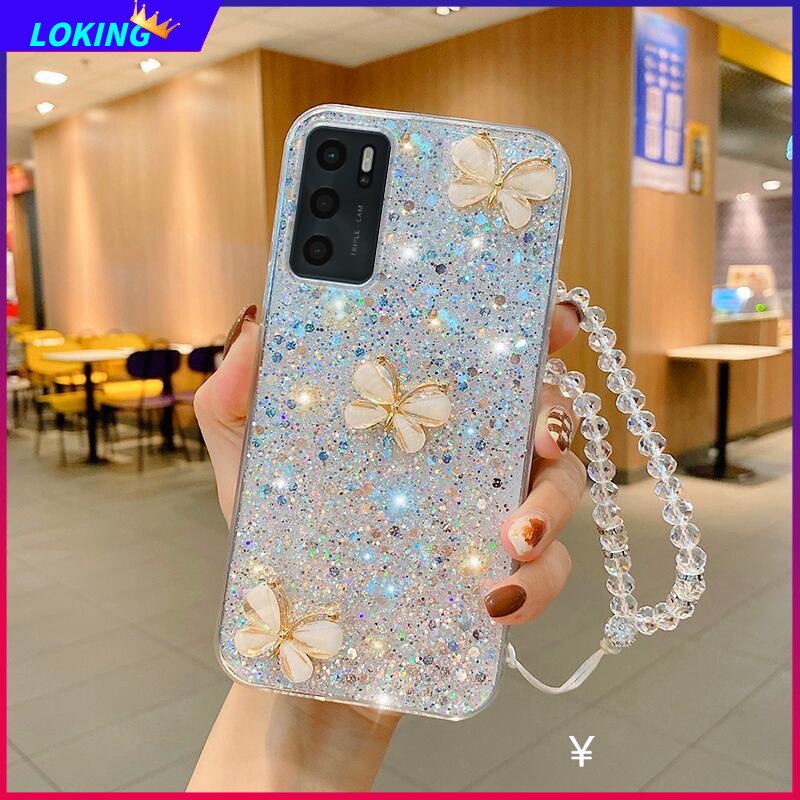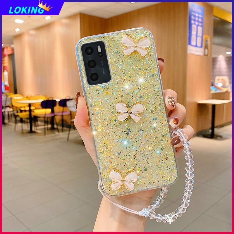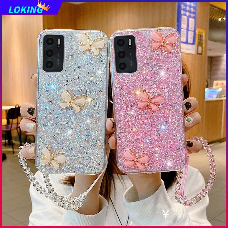 Phone Case For OPPO A17 A17K A16 A16S A15 A15S A16K A16E A54 A74 A95 A9 2020 A5 2020 A31 A52 A53 A92 3D Bling Glitter Butterfly Soft Cover With Crystal Wrist Strap