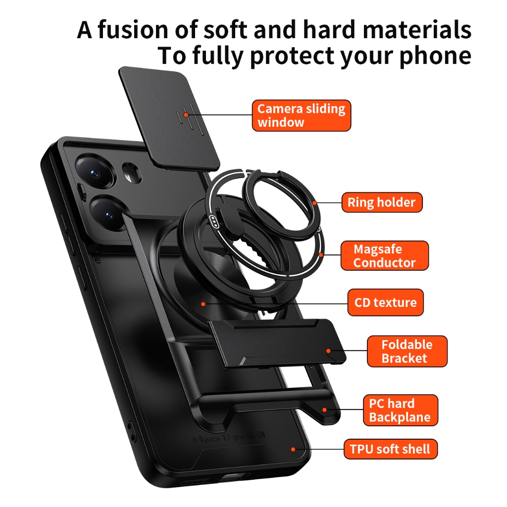 For Xiaomi POCO X7 X8 Pro Max , poco X6 M6 M7 Pro Redmi A7 Pro 4G Rotating Bracket Magnetic PC Armor Phone Case