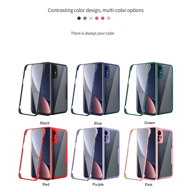 Phone Case for Redmi 9T Note 9 4G 9 9s 9 Pro Max Armor 2in1 360 Shockproof Bumper Front and Back HD Clear Silicone Screen Protector Cover
