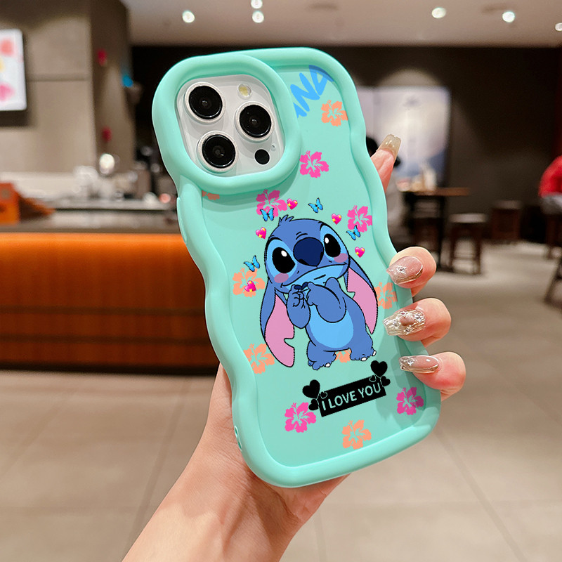 Phone Casing For OPPO A18 A17 A16 A15 A16K A38 A31 A5 A9 A52 A92 A53S A54 2020 A5S A3S A7 cover Cartoon Cute Stitch Wave Side Disney Soft Funny Candy Color