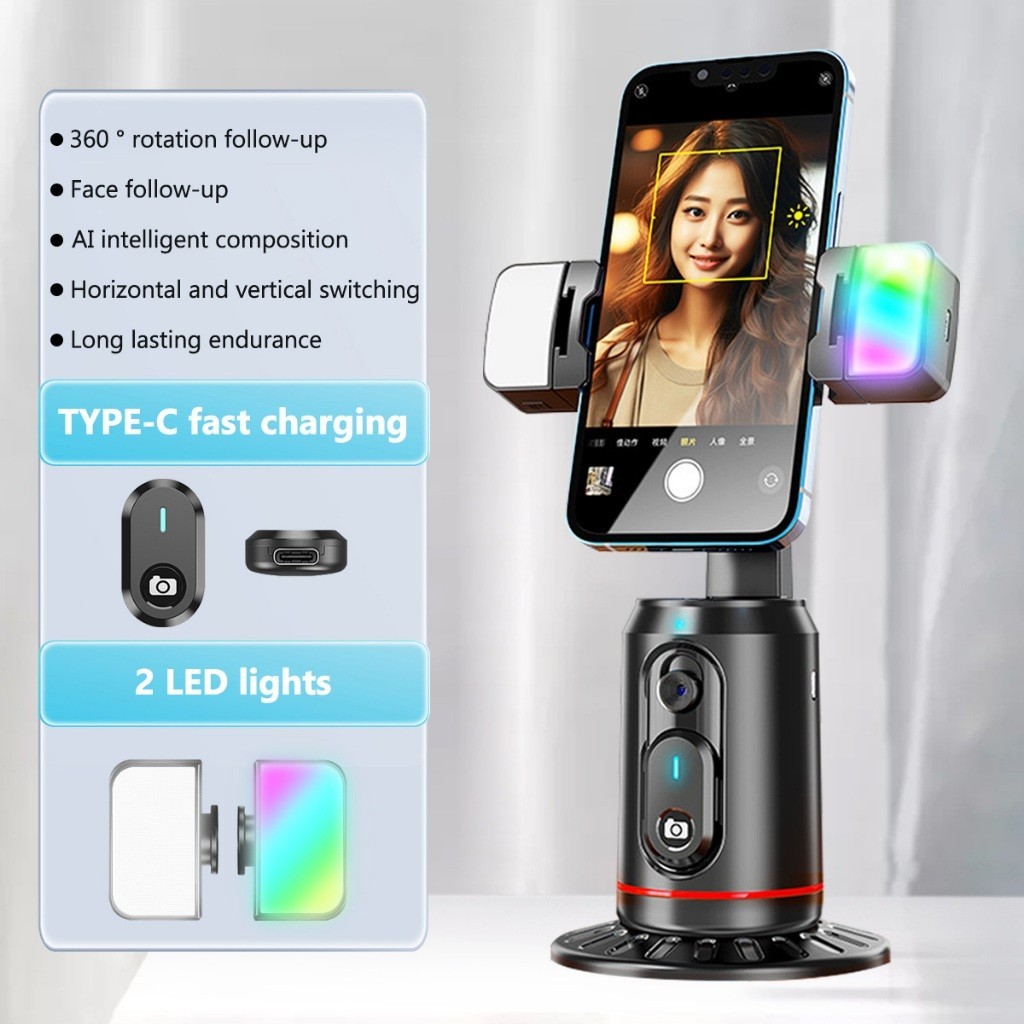 Phone Holder 360 Rotation Gimbal Auto Face Tracking Stabilizer Seguimiento AI with Bluetooth Remote