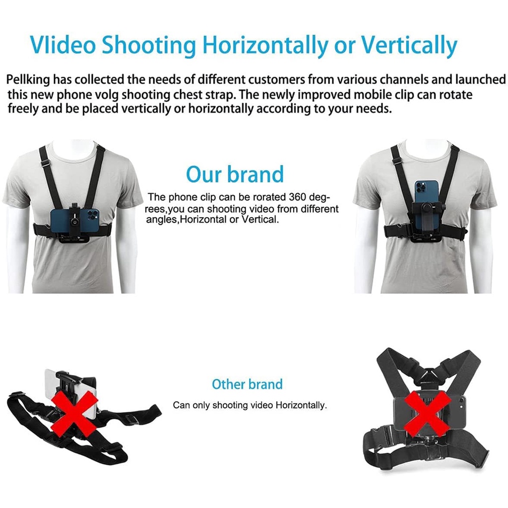 Phone chest mount harness strap holder chest strap rotate harness clip landscape portrait horizontal smartphone holder