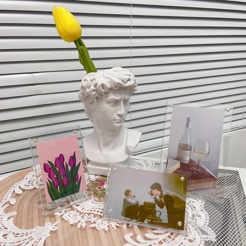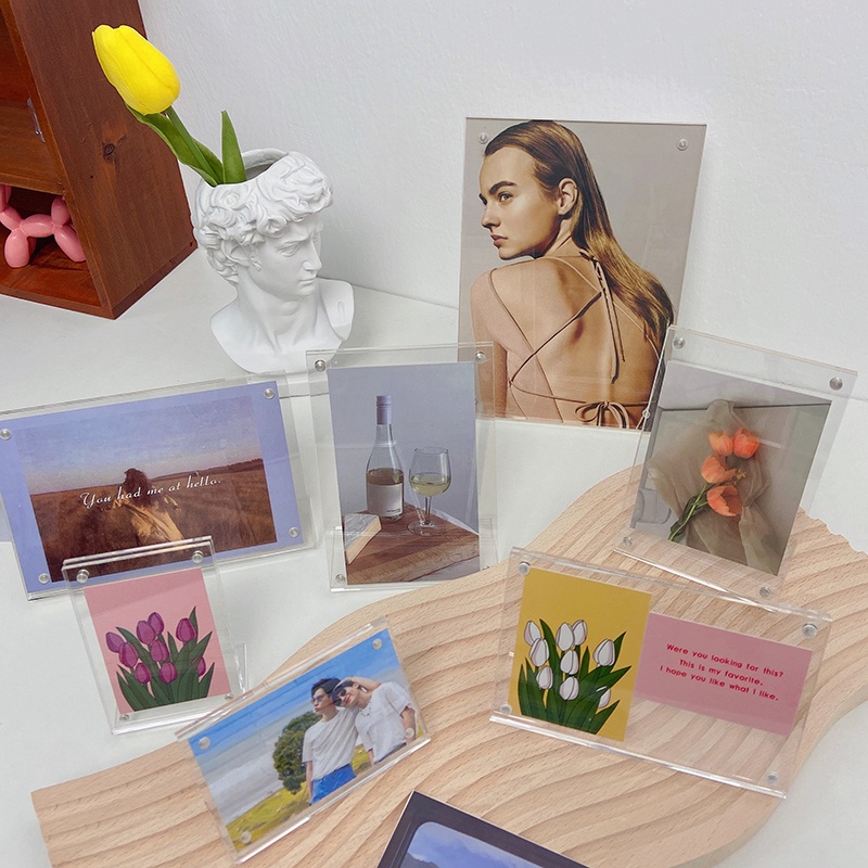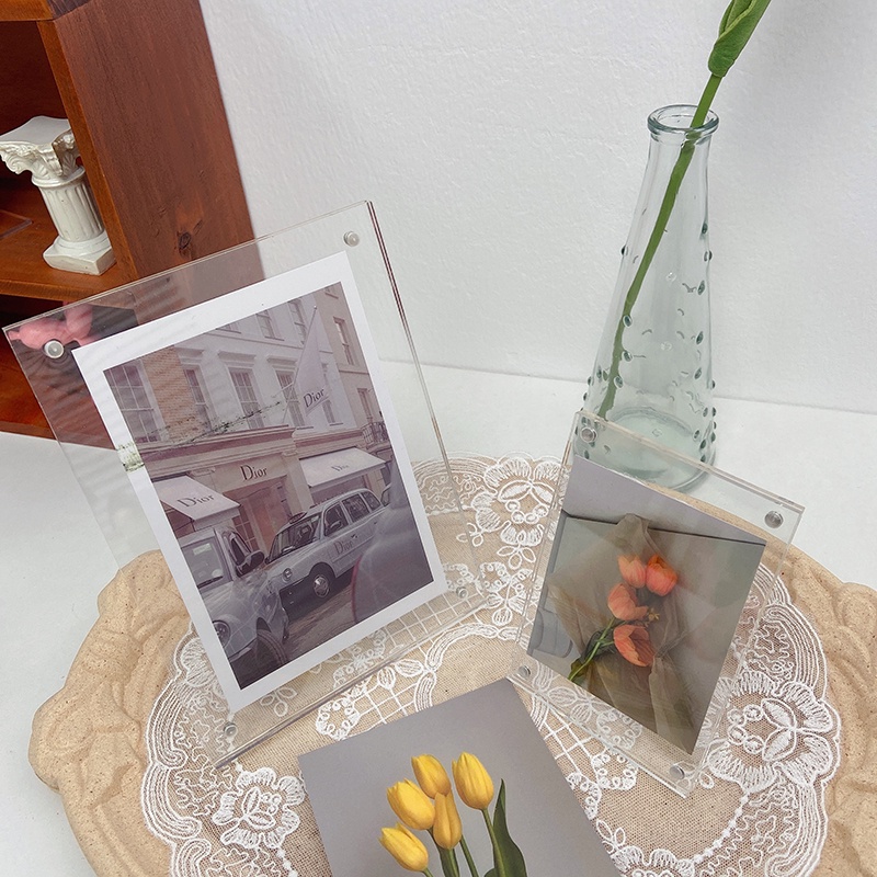 Photo Frame Stand L Shape Photo Holder Acrylic Magnetic Desktop Photo Card Holder Picture