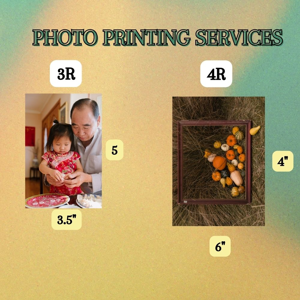 Photo printing services A4, 5r, 4r, 3r, cute size, wallet size and mini instax inspired design