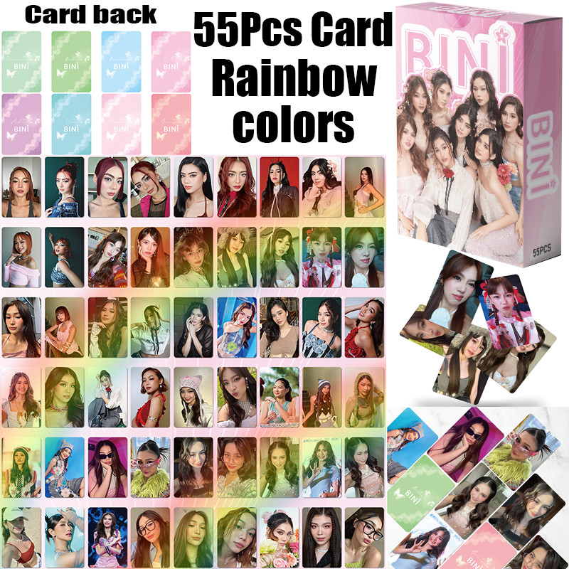 Photocard BINI Lomocards Sheena Aiah Colet Maloi Stacey Mikha Jhoanna Gwen BINI Lomo Cards 55 Pcs Holographic lomo Cards Sticker Poster Lomo Card Hot Idol Collectibles Souvenir