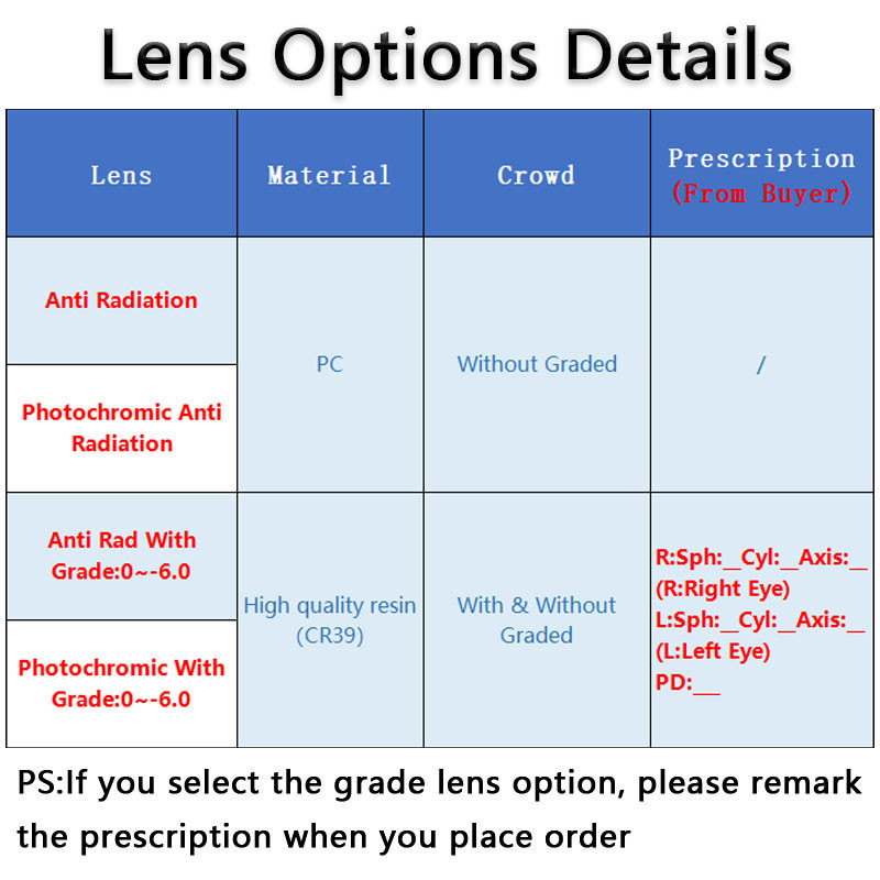 Photochromic Anti Radiation Graded Eyeglass For Women Men Eyeglasses With Graded Lens Eye Glasses With Grade Prescription Glasses Replaceable Lens Myopia Transition Computer Glasse