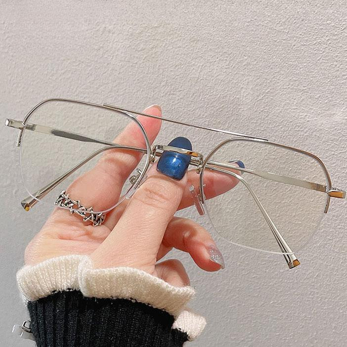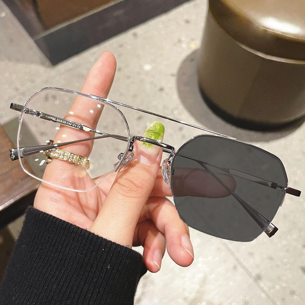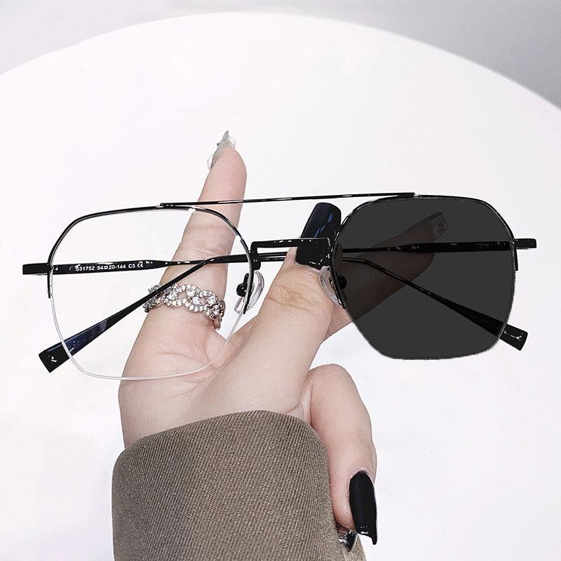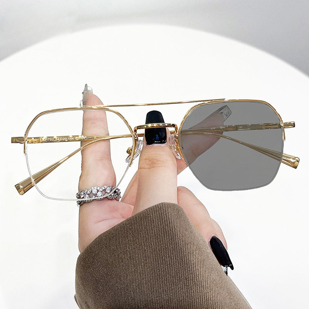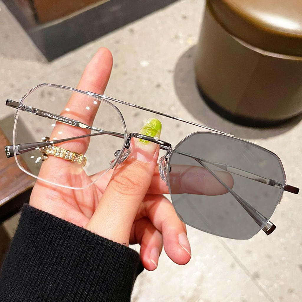 Photochromic Semi Rimless Aviator Glasses Anti Radiation Unisex Men Women Metal Frame Nearsighted