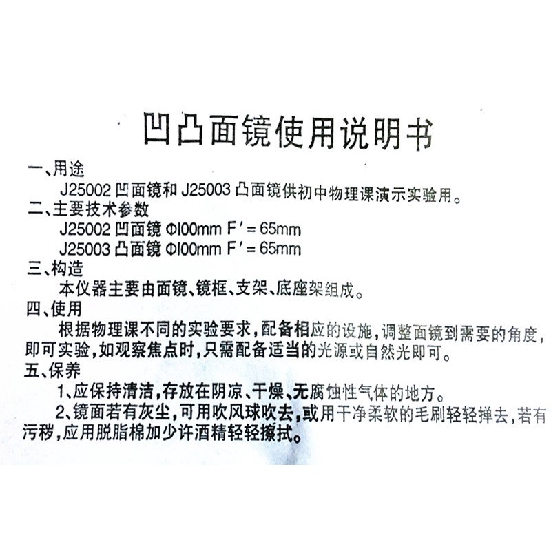 Physics Optical laboratory equipment Convex mirror 10cm in diameter Principle of light reflection fr