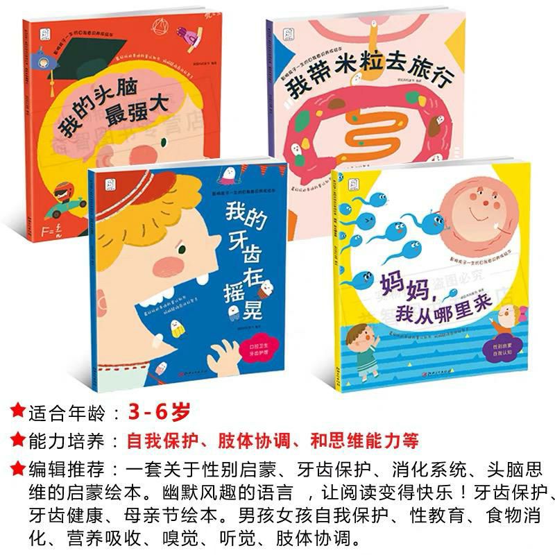 Picture Book Affect Children's Life Self-Consciousness Development Picture Book Storybook Kindergarten Mom Where I Come From My Teeth Shaking Baby Young Children Popular Science Books All 4 Volumes