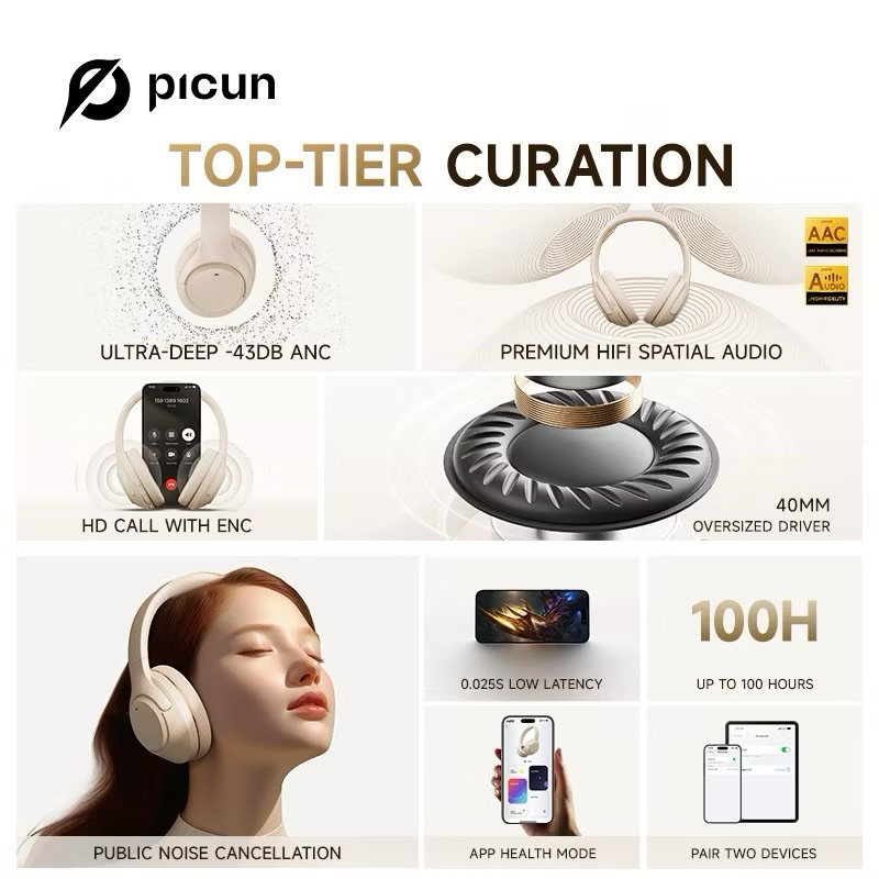 Picun F2 Wireless Bluetooth ANC Headphones